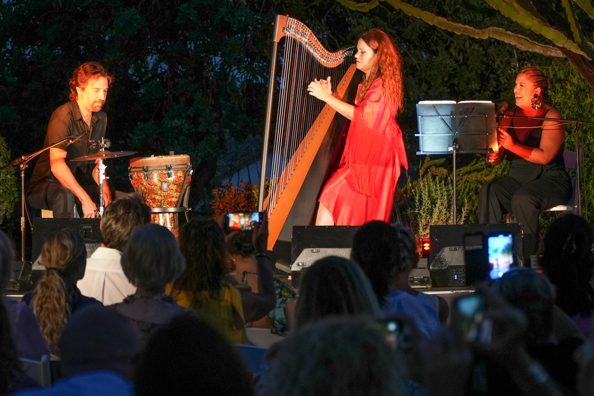El público disfrutó de un emotivo espectáculo de flamenco fusión que ofreció Ana Crismán con su Arpa Jonda acompañada de Perico Navarro a la percusión y Rosa Gómez al cante.