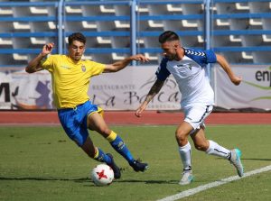 El partido estaba muy vivo. Los locales iban ganando posesión con el paso de los minutos pero no podía cometer ningún descuido ante el filial canario, que había perdido ímpetu en ataque pero no renunciaba ni mucho menos al gol. En los últimos minutos de la primera parte volvieron a la carga los visitantes y Parras estrelló un balón en la escuadra de Wilfred tras empalmar de forma espectacular un saque de esquina (min. 36).