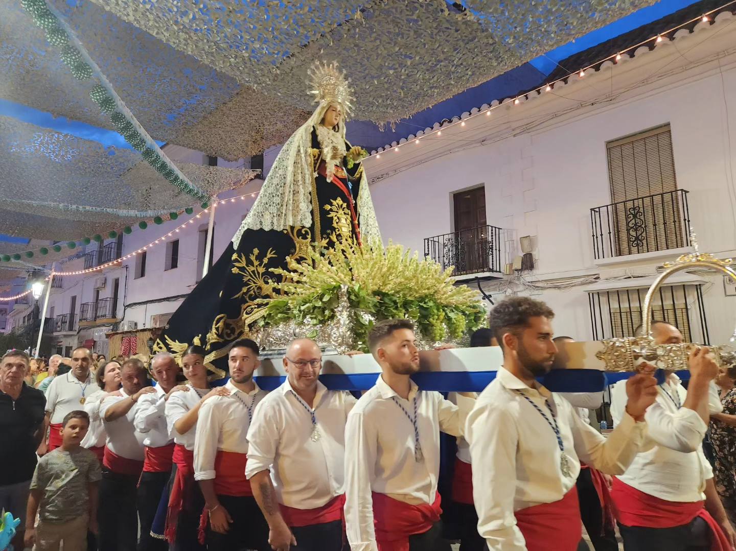 El sábado se celebró la Santa Misa en honor a Ntra. Sra. de los Dolores, cantada por el Coro de la Escuela Municipal de Música en la Iglesia de Santa Ana, en Manilva. Tras la misa la Virgen saldrá en procesión acompañada por la Banda Municipal de Música y se realizará la tradicional ofrenda de uva. Seguidamente, como cada año, tendrá lugar el concurso al racimo de mayor peso. Este año ganó la viña de Francisco Benitez Castillo con un racimo que ha pesado 1.670kg.
