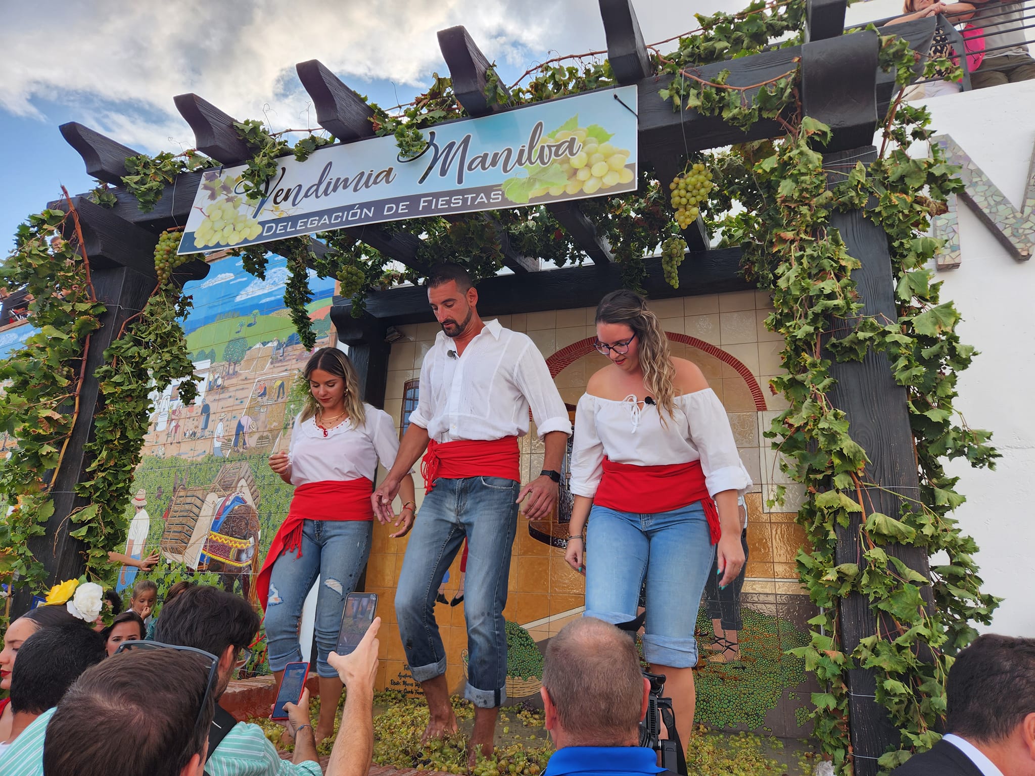 El tiempo dio la tregua suficiente y justita y se pudo celebrar sin problemas la Fiesta de la Vendimia 2023 en Manilva. Uno de los eventos claves del año en este municipio y que viene a marcar el final del verano, a la vez qu se destaca al vino, uno de los puntos estratégicos de Manilva. Solo, por razones de precaución, no se celebró el habitual desfile de caballistas para evitar el riesgo de caidas al estar mojadas las calles por las lluvias caidas durante la madrugada.