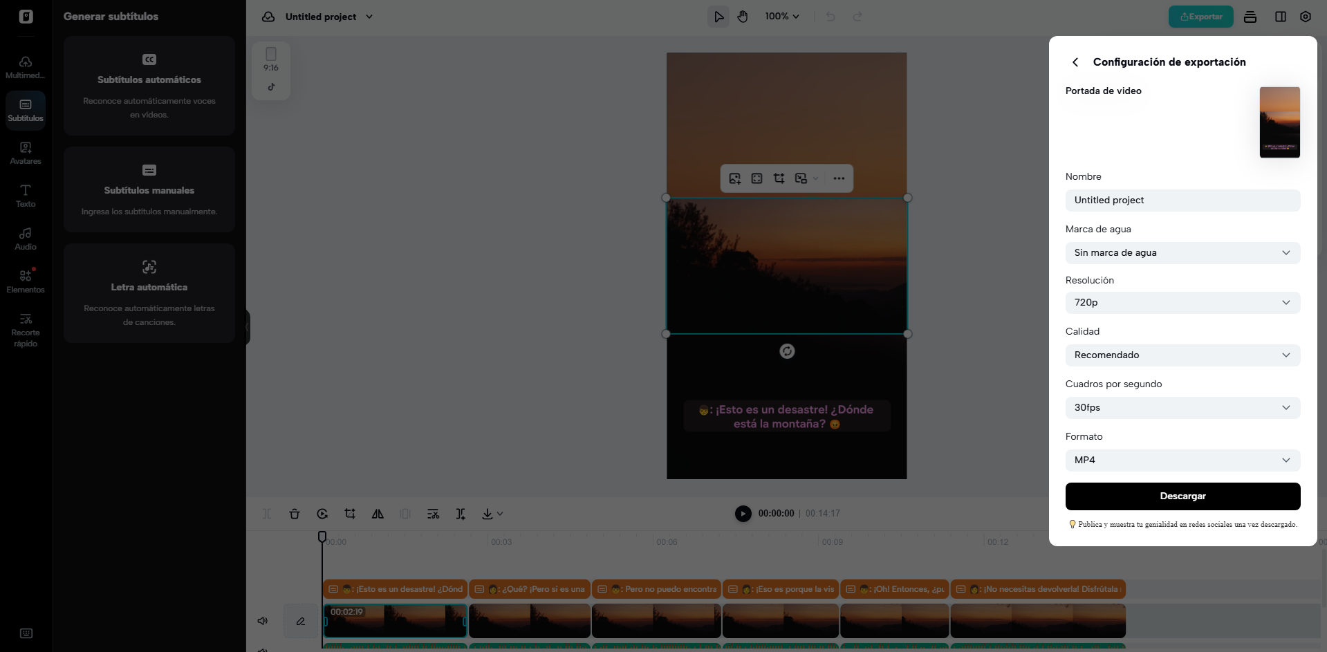 Una vez estabilizado, puedes ajustar subtítulos, filtros, efectos o música de fondo. Modifica el tamaño, color o alineación para un acabado perfecto.
