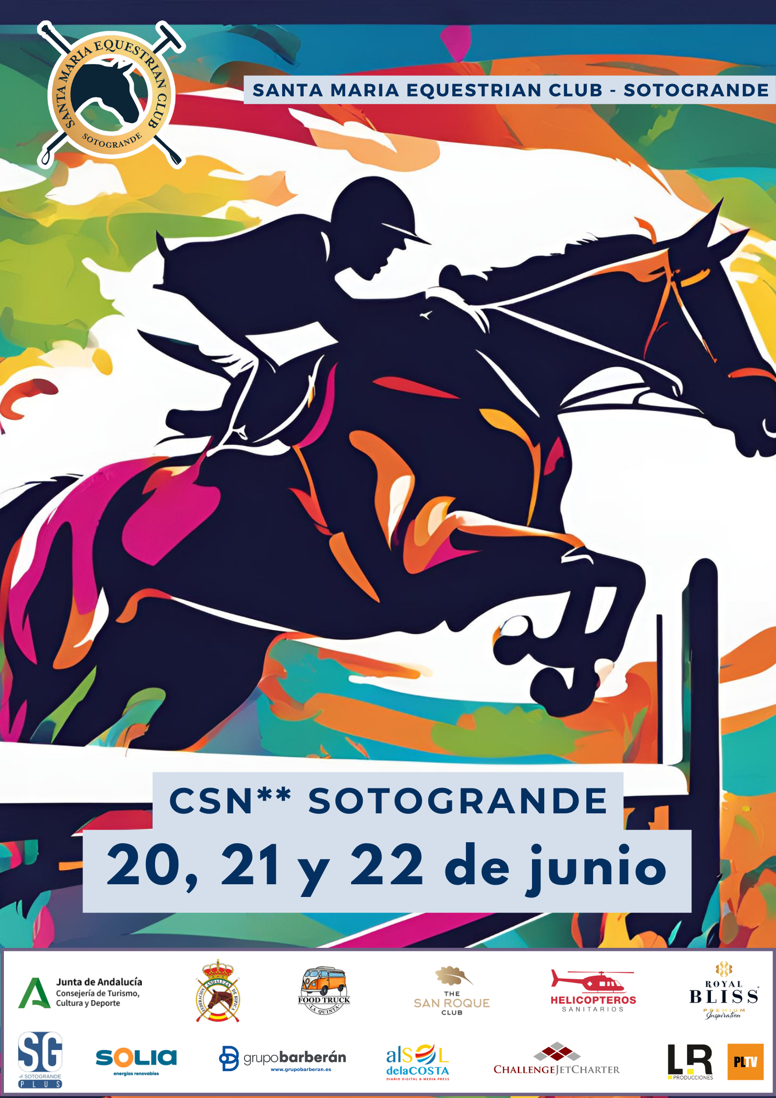 Este concurso cuenta con el apoyo de la The San Roque Club, Helicópteros Sanitarios, Royal Bliss, Challenge Jet Charter, SOLIA, Grupo Barberán, SGPlus, LR Producciones/PoLoline TV, Al Sol de la Costa, La Quinta, la Federación Andaluza de Hípica y la Consejería de Turismo, Cultura y Deporte de la Junta de Andalucía.