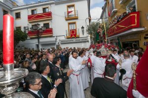 Ya por la tarde salió la Pollinica en el centro de Marbella. Desde su templo en la Calle San Juan de Dios. Mucho público en las calles y sin problemas de ningún tipo. En la salida estuvieron en representación de la ciudad el alcalde y el concejal de Turismo, Javier Porcuna.