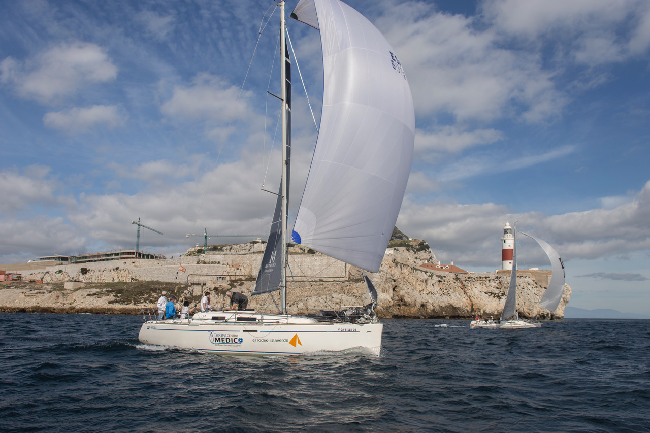 A las 12:00 horas en punto el oficial Juan Luis Cervera dio la salida a esta prueba que en esta ocasión, y como viene sucediendo en ediciones anteriores, optó por la regata geográfica o costera iniciándose en la misma Bahía frente a Gibraltar y llegando a la cara este del Peñón, concretamente en la enfilación de la pista del aeropuerto de Gibraltar, Orc 3 realizó una prueba más corta. Un número aproximado de 35 barcos salieron a recorrer las 20 millas del recorrido con un viento de poniente de 15 nudos que llevó a la flota hasta Punta Europa. Al pasar al sur de Gibraltar las encalmadas propias del socaire de la roca y las rachas en algunos puntos del recorrido hicieron un poco más difícil la navegación y puso a prueba a las tripulaciones participantes en esta IX Prueba del VIII Campeonato Interclubs del Estrecho 2018.