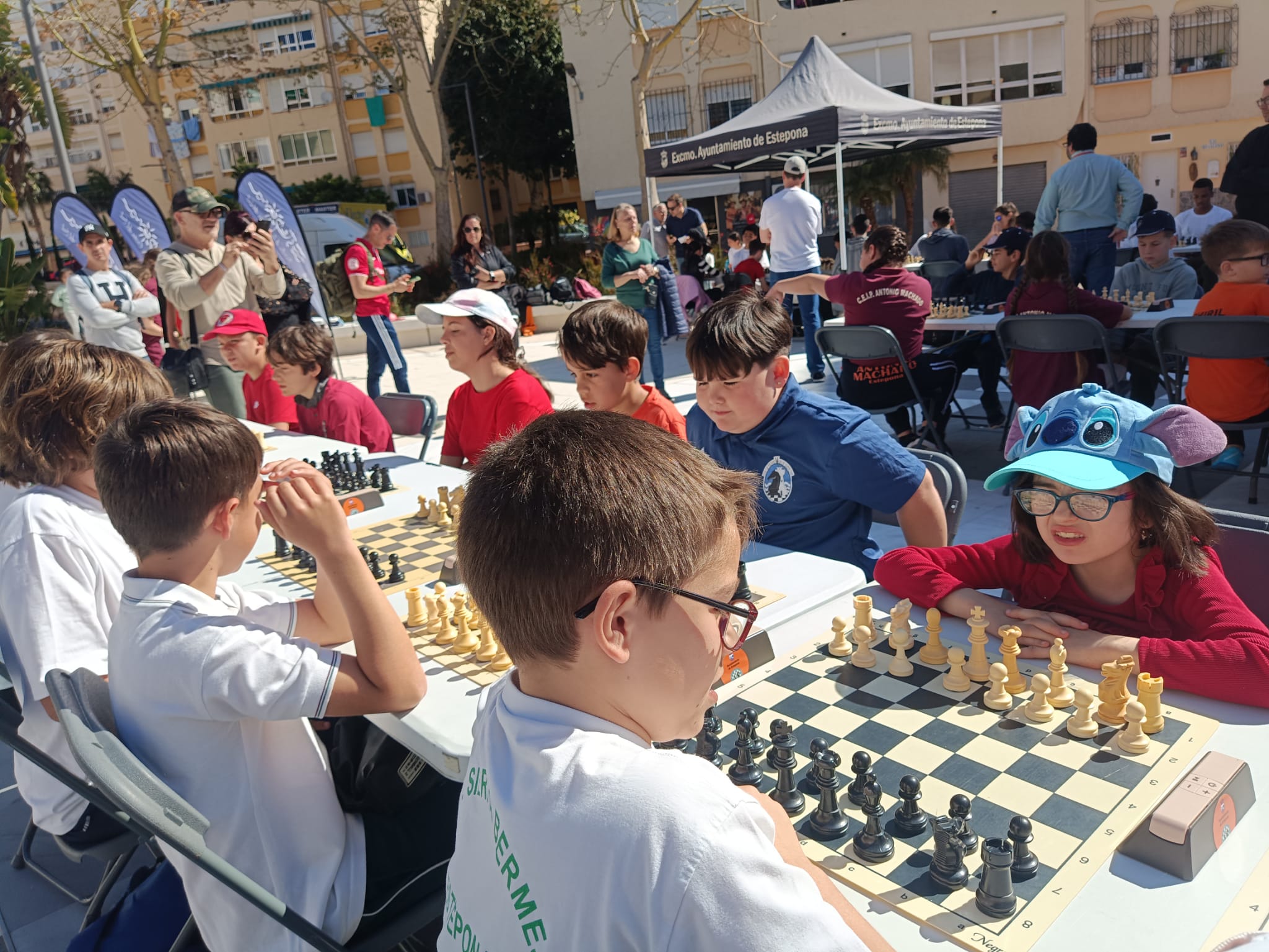 El XI Torneo Intercentros «Estepona Vive Sus Calles 2025» fue un éxito rotundo, reuniendo a 12 colegios de primaria y 5 institutos, con cerca de 200 alumnos compitiendo. En un ambiente de emoción y deportividad el evento se celebró en la Plaza de Ajedrez de Estepona y contó con el respaldo del Ilmo. Ayuntamiento de Estepona, las delegaciones de Cultura y Deportes, y la Escuela Municipal de Ajedrez, junto al apoyo esencial de directores, profesores, padres y madres.