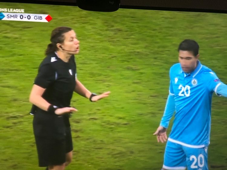 En el segundo tiempo salió Gibraltar por la victoria, lo que endureció el juego sanmarinense. A los 49´ una dura entrada del capitán local Simoncini a Torrilla significó que la árbitra ucraniana Kateryna Manzul( que tuvo una acertada actuación) le expulsara con roja directa. El equipo de Gibraltar fue el dueño y señor del partido con dos claras ocasiones de gol que no entraron de milagro. En el 61´ un cabezazo de Olivero que rozó el palo y, especialmente, a los 71´ una habilidosa jugada de De Barr que se plantó ante el meta Benedittini y tanto quiso ajustar el balón que salió lamiendo el palo. Ahí estuvo la jugada de la clasificación para Gibraltar. De ahí al final muchas faltas, pérdida de tiempo y casi ninguna acción clara de gol.