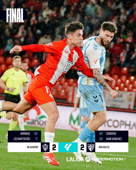 ⚔️ Sigue el empate a 2️⃣ en el #AlmeríaMálaga. #LALIGAHYPERMOTION | #LALIGAHighlights pic.twitter.com/KE2hMkXNFh