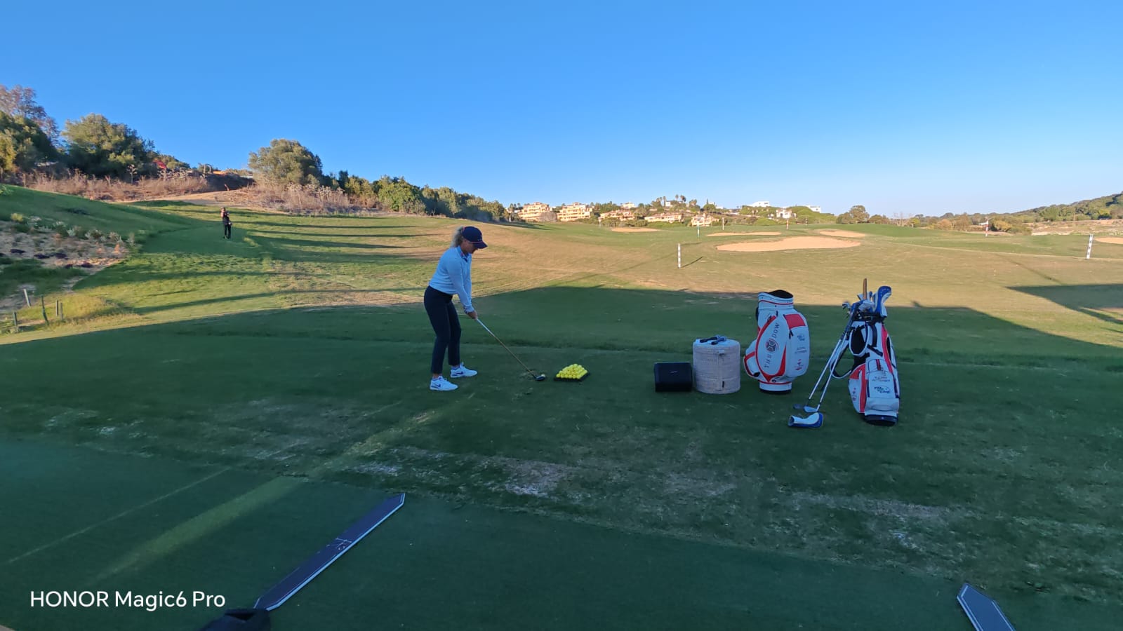 Las instalaciones incluyen una línea de tee de hierba natural, una línea de tee cubierta con zona de entrenamiento privada, tecnología Toptracer, centro de ajuste personalizado, múltiples zonas de chipping y putting, y opciones de práctica nocturna.