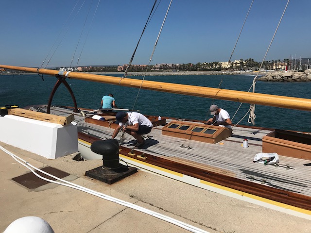 Mientras, se están terminando los últimos detalles de arreglo del “Hispania 1909”, barco de la Fundación Isla Ebusitana, que representará a España en este gran evento. Las tareas están supervisadas permanentemente en la zona próxima a la Torre de Control por el patrón del barco, Arnaldo Brito, y el táctico Dani Revilla.