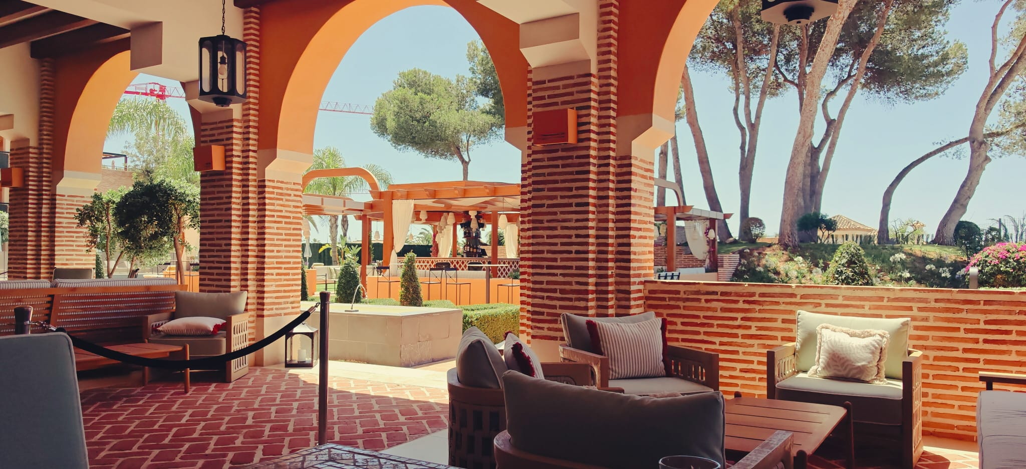 El diseño y la arquitectura del hotel rinden homenaje al legado árabe de Andalucía y han sido creados por el estudio Goddard Littlefair. Los amplios arcos de herradura, la mampostería de piedra local y los ornamentados azulejos zellige representan a la artesanía de la región, mientras que las delicadas ventanas jali y los faroles trasladan ese espíritu morisco a cada rincón del hotel. La paleta de colores, cuidadosamente seleccionada, se inspira directamente en la tierra y el paisaje: cálidos tonos terracota, ocres suaves y verdes salvia que trasladan todo este concepto creativo. Asimismo, los patios y espacios exteriores cobran vida gracias a la presencia del agua y de una exuberante vegetación, con aromas cítricos que evocan a los tradicionales riads andaluces.