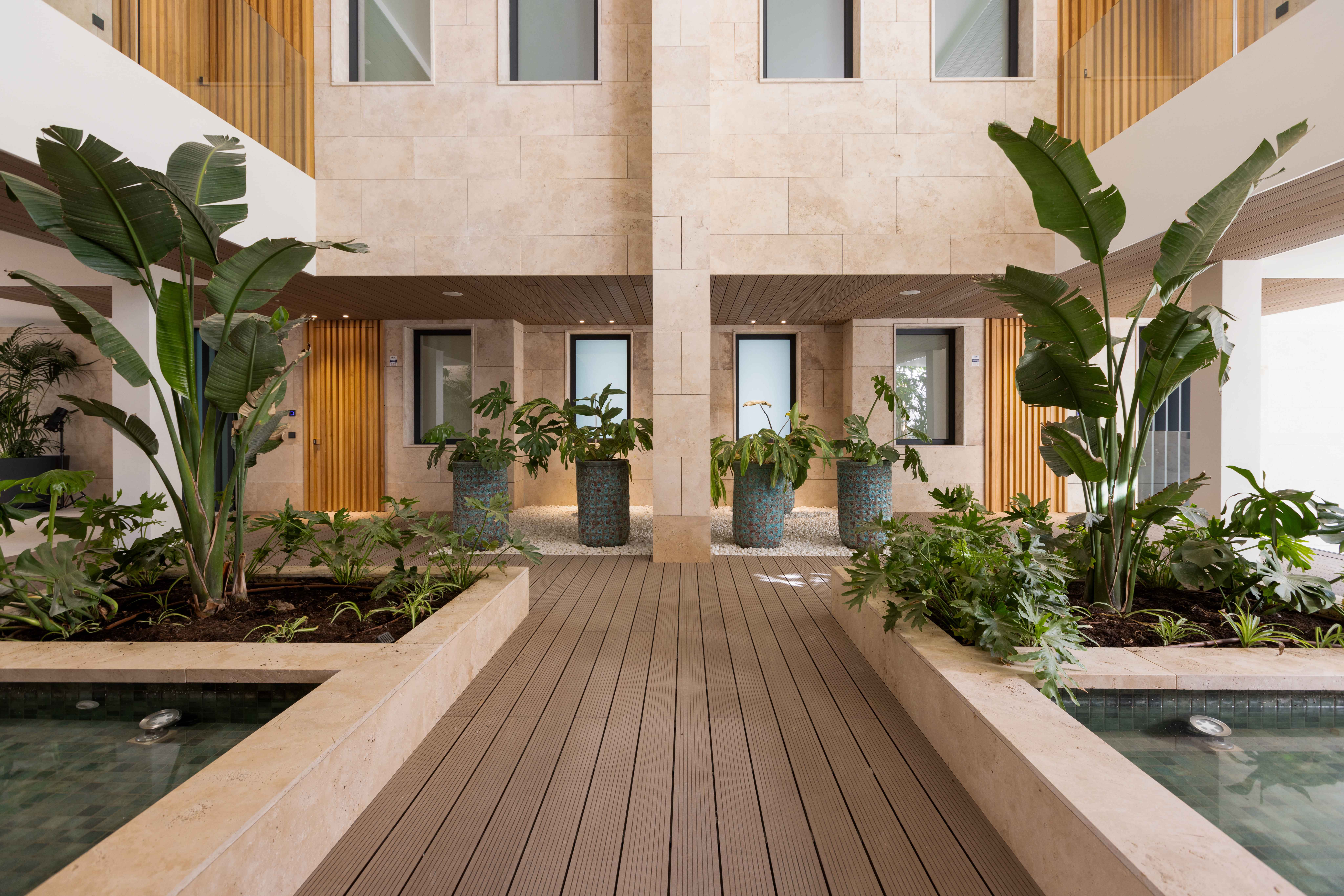 Zonas comunes con materiales de alta calidad y espacios verdes