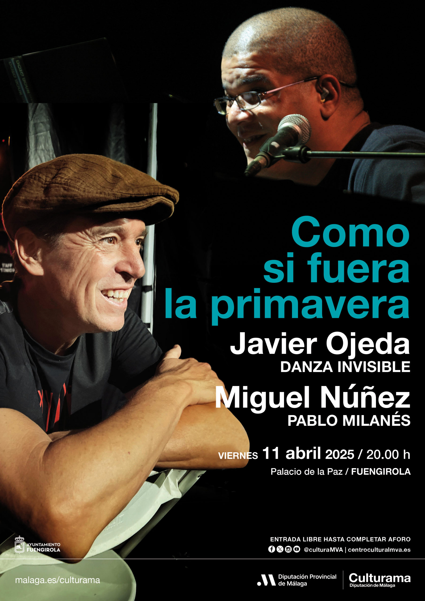 El músico malagueño Javier Ojeda, líder de la banda Danza Invisible, y el cubano Miguel Núñez, director musical de la agrupación de Pablo Milanés, ofrecerán tres conciertos creados en exclusiva para la Diputación de Málaga. Comenzarán el 9 de abril en el Centro Cultural MVA de la institución, continuarán el 11 en Fuengirola y concluirán el 4 de mayo en Vélez-Málaga.