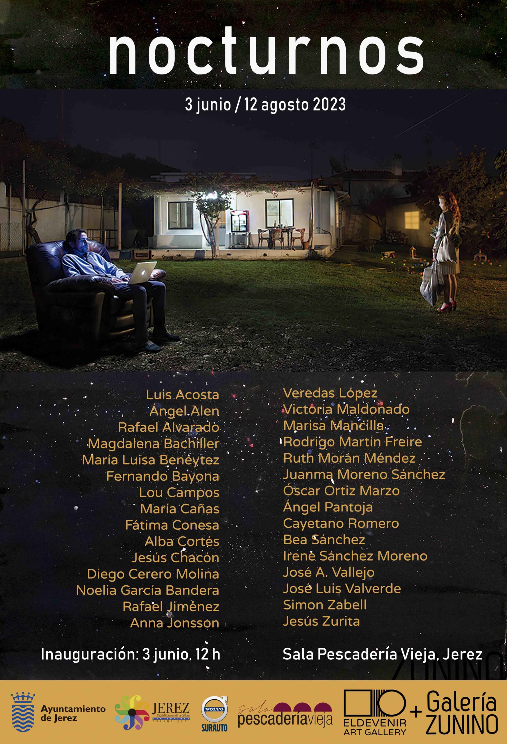 La mítica Sala de Arte Pescadería Vieja de Jerez, coordinada por el veterano crítico cultural, Bernardo Palomo, pone el broche a la temporada expositiva con “Nocturnos”, una ambiciosa exposición colectiva. La muestra reúne a 30 destacados artistas visuales andaluces de distintas generaciones, lo que supone una interesante panorámica de la actual escena artística. En “Nocturnos” podremos disfrutar de una treintena de obras de una amplia variedad de técnicas, desde el dibujo a la pintura, pasando por la escultura, la fotografía, el vídeo arte y la instalación. Dicha exposición está comisariada por dos galeristas, la malagueña María Rosa Jurado Sánchez, de Eldevenir Art Gallery y la onubense Anabel Zunino Delgado, de Galería Zunino, quienes vienen trabajando conjuntamente desde 2019 en proyectos tan relevantes como el que se presenta en esta sala jerezana.