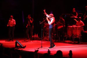 Una fenomenal banda acompaña a Guerra. Nada menos que 15 miembros de la 4.40 que dieron todo un espectáculo con sus instrumentos. Pero el dominicano no se quedó atrás y dio varias clases de cómo tocar la guitarra junto al saxofonista. Poco a poco el concierto era ya todo un espectáculo coreado por el público, donde se veía a muchos latinos y a gente de todas las edades. No faltaron temas como «La llave de mi corazón”, “Como yo”, “A pedir su mano”, “Para ti”, sin olvidarse de sus temas tan conocidos como “Costo de la vida”, “Visa para un sueño” o “La bilirrubina”. Esta era la última prevista para la despedida, pero el público quería más. Y Juan Luis Guerra regresó cerrando con tres bises largos que fueron muy agradecidos y bailados. Al final la gente se fue contentísima a casa, demostrando el dominicano su entrega en el escenario y lo bien que baila pese a su cuerpo típico de jugador de baloncesto. Como nos dijo una vez en Málaga «de no haber triunfado en la música me hubiera tocado jugar al basket». Afortunadamente la música ganó y la canasta perdió.