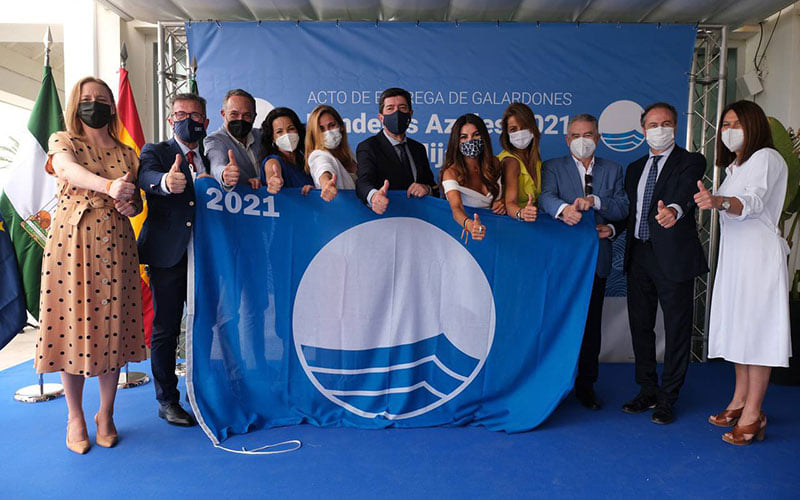 Marín ha presidido hoy el acto de entrega de las Banderas Azules 2021 a las entidades andaluzas reconocidas, celebrado en la localidad malagueña de Mijas y en el que recibieron la distinción 115 playas de la región, 20 puertos deportivos y dos embarcaciones turísticas sostenibles.