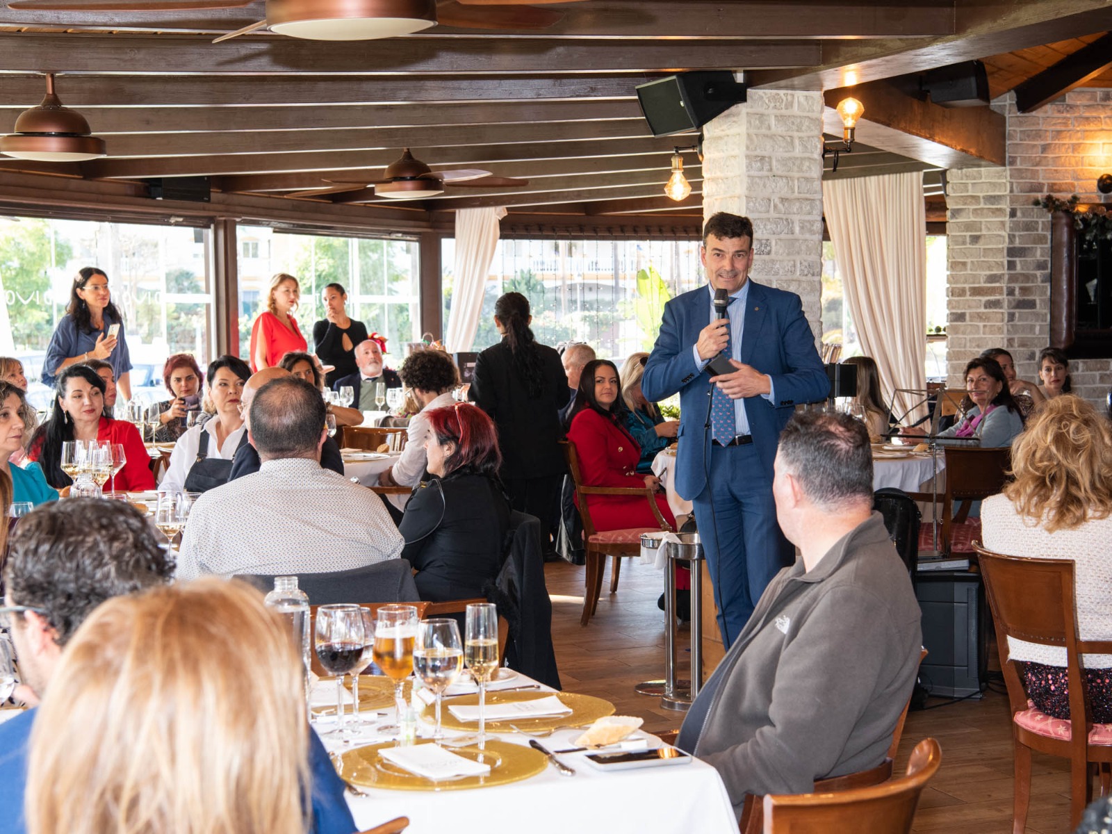 El director y presentador del programa de Radio Televisión Española “Emprende”, Juanma Romero, respaldó a las mujeres empresarias en el almuerzo de Navidad que organizó el Club Empresarial de la Costa del Sol, Sinergias Femeninas, en el restaurante Divot, en Marbella.