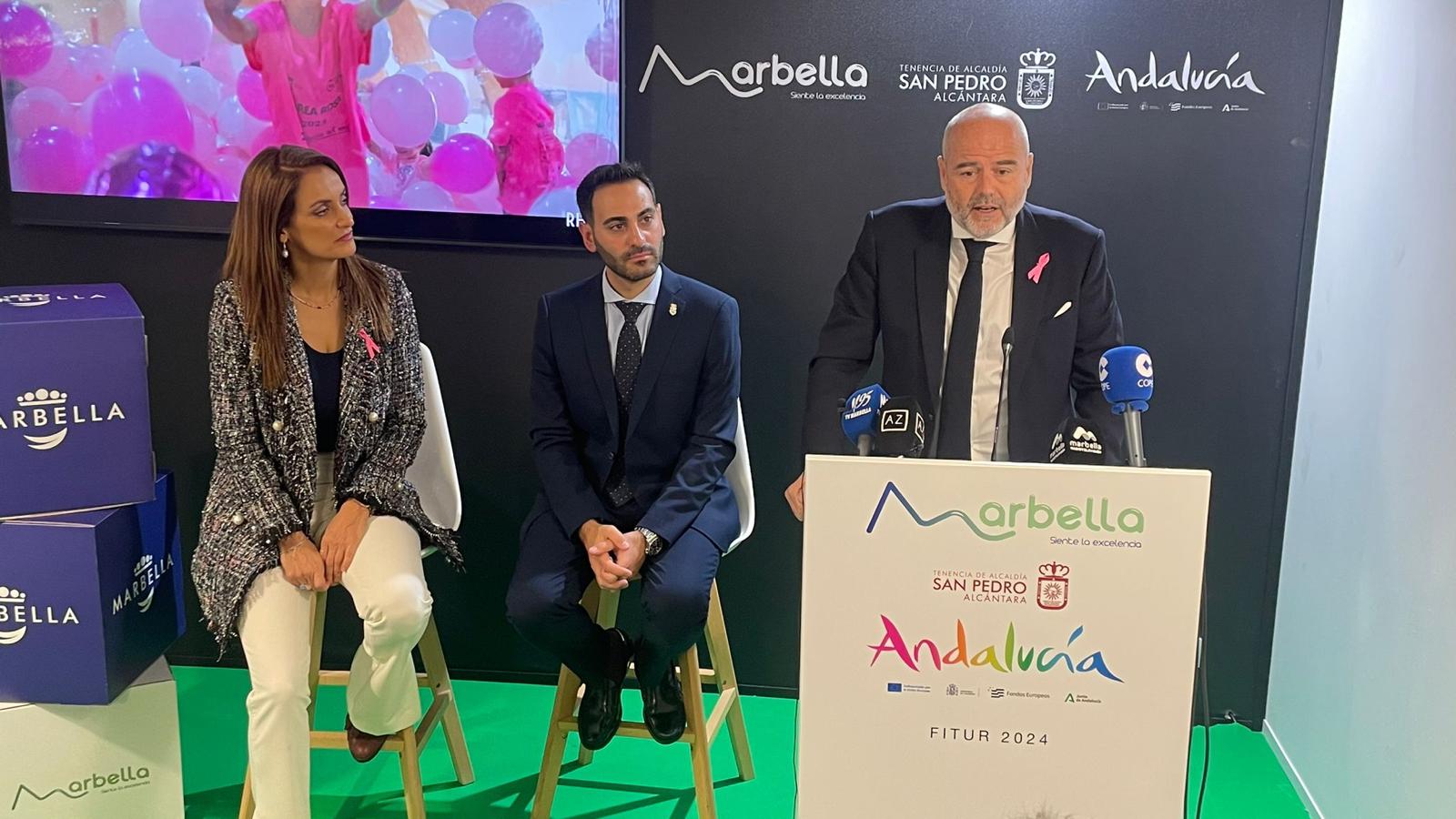 Esta mañana ha tenido lugar en Fitur la presentación de la carrera “Marea Rosa” que la Asociación Española Contra el Cáncer organiza cada año con motivo del Día Mundial Contra el Cáncer de Mama para mostrar su apoyo a las mujeres que padecen este tipo de tumor. En el acto de presentación, que ha tenido lugar en el stand que el Ayuntamiento de Marbella tiene en la feria de turismo, ha estado Santiago Gómez-Villares, presidente de la sede local de Marbella y Setareh Mohregi, vicepresidenta. Por parte del Ayuntamiento ha estado el concejal de deportes, Lisandro Vieytes.