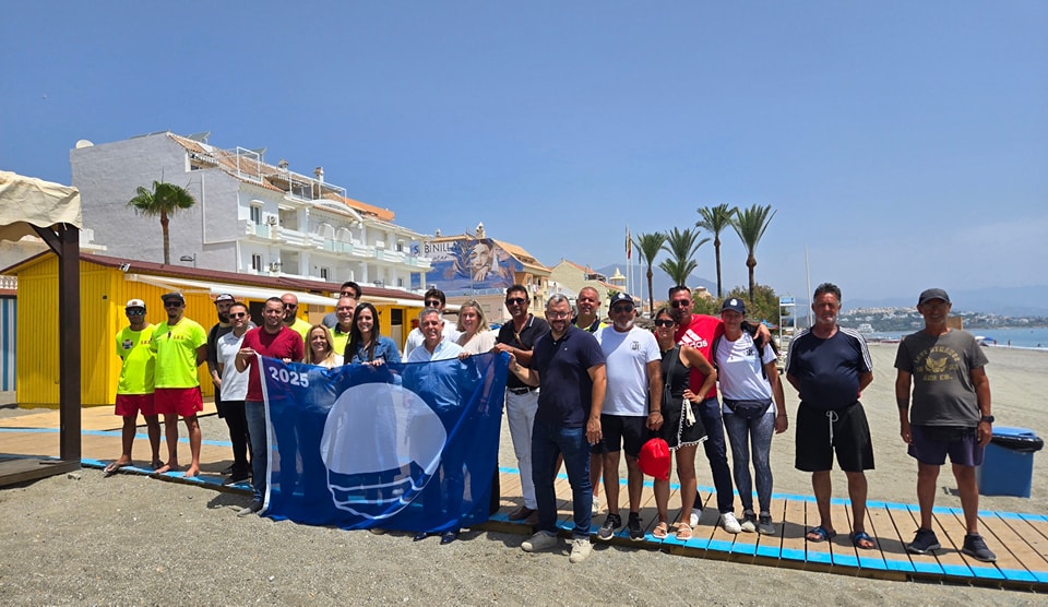 Mario Jiménez, alcalde de Manilva, acompañado de los concejales Gema Zotano( Playas ), Agustín Vargas( Turismo ) y Eva Galindo ( Fomento de Empleo ), ha realizado el acto oficial de la izada de la Bandera Azul 2025 que se le ha otorgado al municipio. El distintivo ya ondea en la playa de Sabinillas.