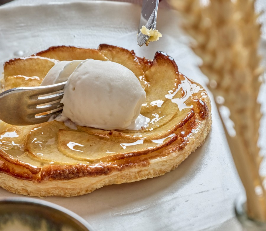 T4arta de manzana horneada al horno al momento con helado de canela