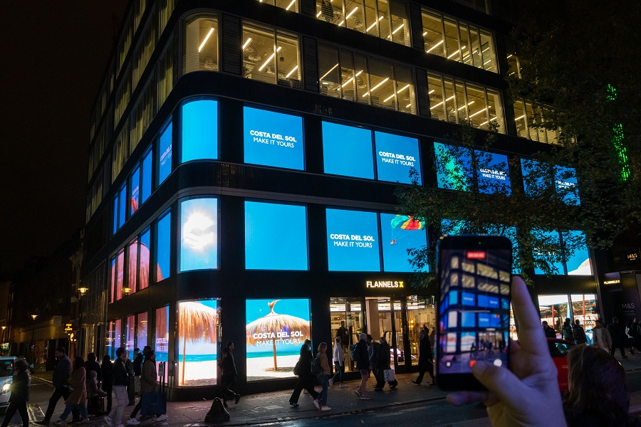 La acción se proyecta durante una semana en la pantalla The Cube Flannels X, una estructura de 215 metros cuadrados compuesta por 37 pantallas LED que funcionan como un único lienzo tridimensional. Este soporte, ubicado en el edificio de los grandes almacenes Flannels —referente del lujo y la moda londinense—, ofrece una plataforma multidimensional capaz de conectar con medio millón de consumidores diarios, combinando tecnología, arte y creatividad.