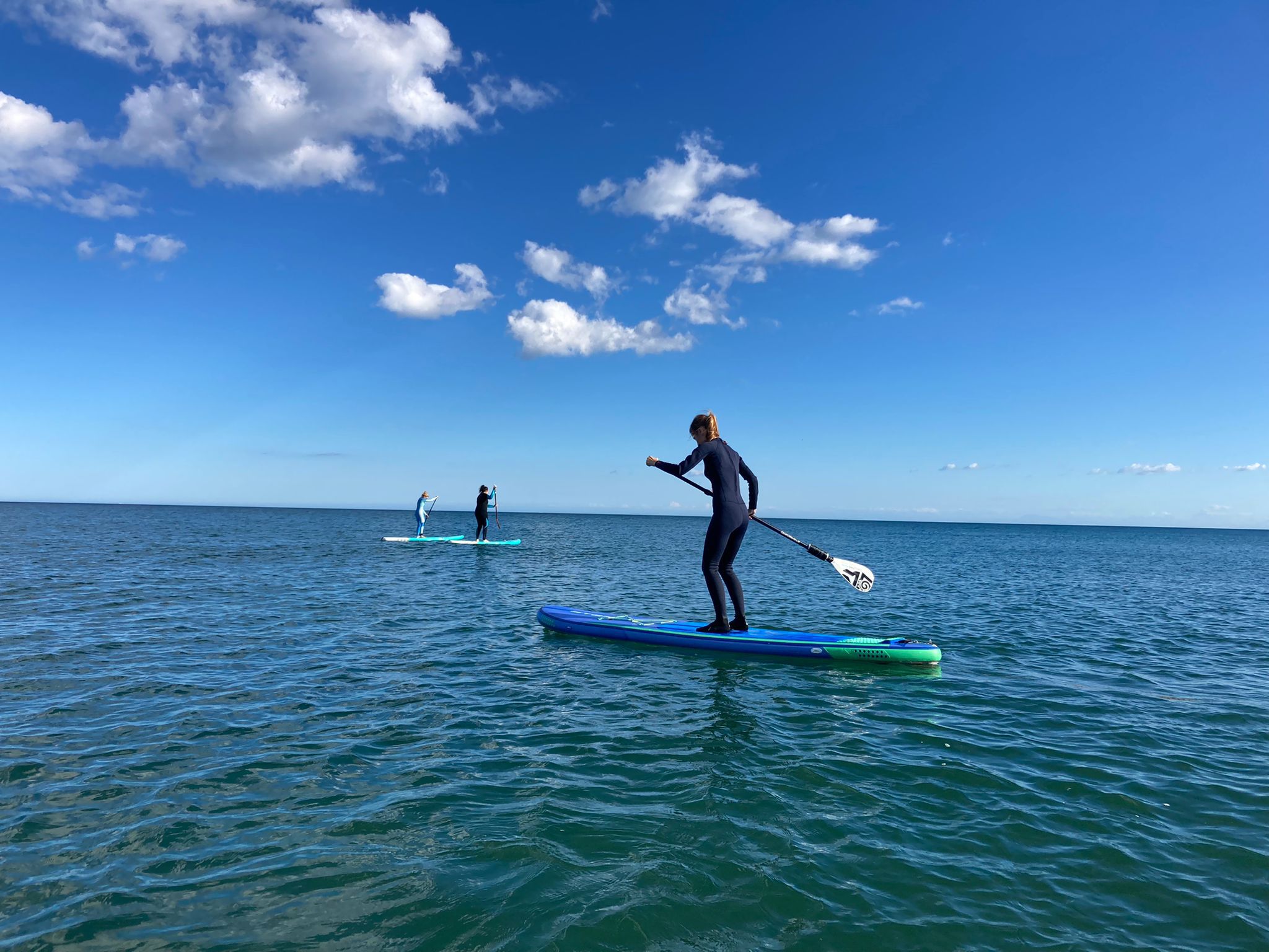La Escuela, que desde el primer curso gestiona la empresa local Chill The Wave, proporciona las tablas, remos y todo el material necesario para la práctica del paddle surf y el alumnado solo tiene que aportar su propio neopreno en los días más frescos.