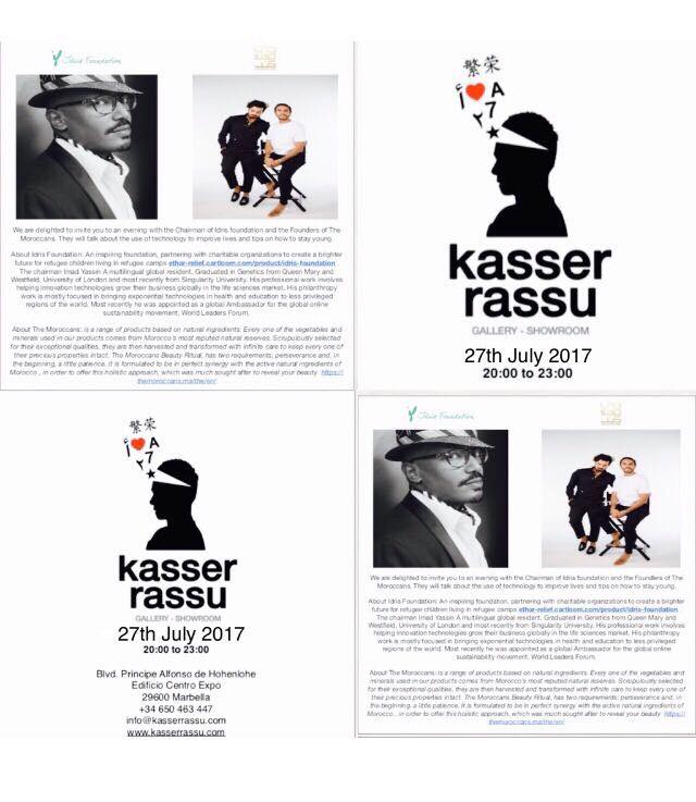 La Idris Foundation ha llegado a Marbella para dar a conocer sus actividades y proyectos a nivel internacional. A través de Ahmed Ashmawi, uno de sus miembros, se escogió la afamada Kasser Rassu Gallery de Marbella( dirigida por Shaheed Kavousi) para la presentación a un selecto grupo de invitados de la sociedad costasoleña. Imad Yassin, chairman de la Fundación, estuvo presente en el evento y dio a conocer los detalles de esta iniciativa partida desde el Reino Unido con el fin de aprovechar la tecnología para mejorar la calidad de vida y expectativas profesionales de la juventud con problemas.