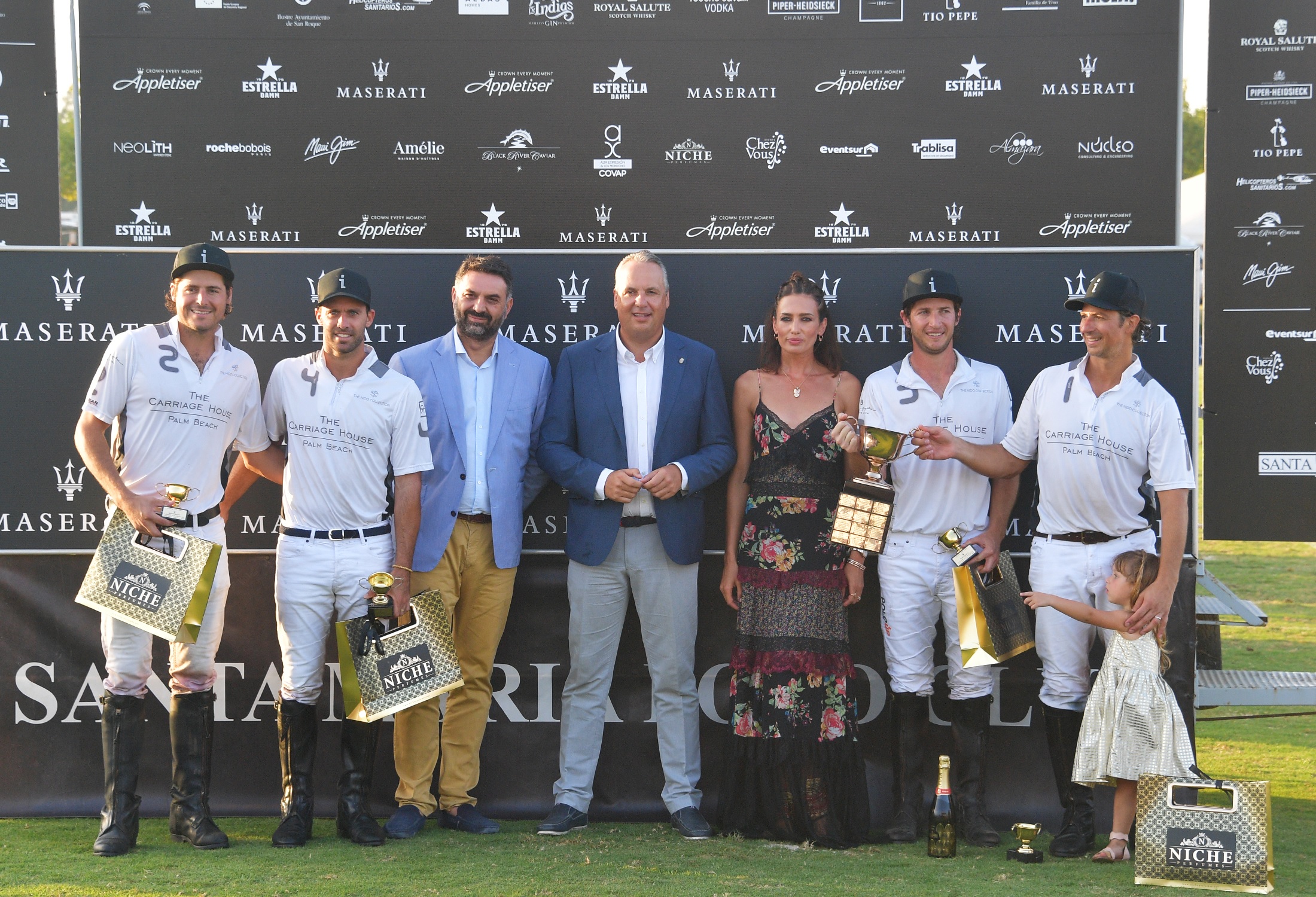 Facundo Pieres, polista de La Indiana y número 2 del ranking mundial, recogió el trofeo Aedas al mejor jugador de la final de manos de Mikel Artaza, en representación de Aedas Home. Pieres también se llevó el trofeo Tío Pepe como máximo goleador de la Copa de Oro de alto hándicap, que entregó Álvaro del Río, consejero de Bodegas González Byass. La yegua Azúcar, montada por Facundo Pieres, fue reconocida con el Trofeo ¡Hola! al mejor caballo, galardón que se encargó de dar el presidente de Santa María Polo Club, Antonio Ortiz. Tras los premios individuales, el consejero de Turismo y Deporte de la Junta de Andalucía, Francisco Javier Fernández, y el alcalde de San Roque, Juan Carlos Ruiz Boix, entregaron los reconocimientos al equipo finalista, Lechuza Caracas. Finalmente, la embajadora de Maserati, Nieves Álvarez, hizo entrega de la prestigiosa Copa de Oro Maserati de alto hándicap a los componentes de La Indiana.