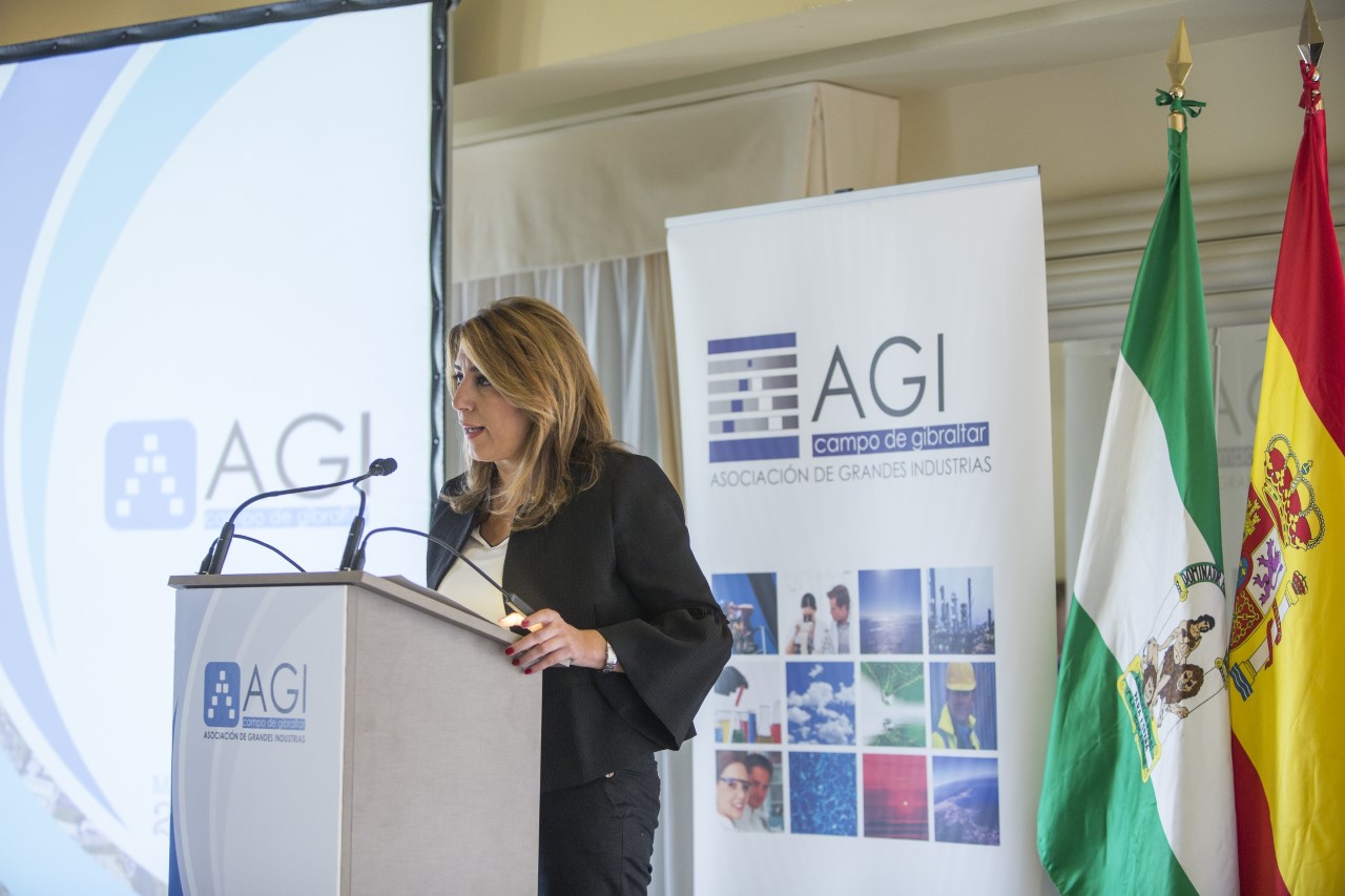 La Asociación de Grandes Industrias del Campo de Gibraltar (AGI) ha presentado hoy su Memoria correspondiente al ejercicio 2016, un documento de gran importancia que sintetiza los resultados fundamentales de las actividades económicas y sociales que genera el conjunto de empresas asociadas. La presidenta de la Junta de Andalucía, Susana Díaz, y el delegado del Gobierno en Andalucía, Antonio Sanz, intervinieron en un evento en el que estuvieron acompañados por el presidente de la asociación, Manuel Doblado.