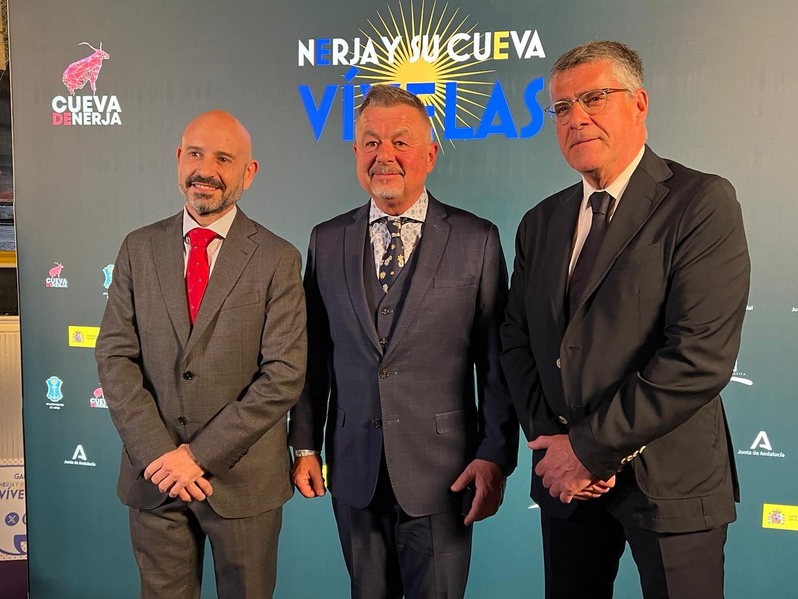 Martín ha posado junto a los anfitriones, el presidente de la Fundación Pública de Servicios Cueva de Nerja -Javier Salas- y el vicepresidente y alcalde de Nerja -José Alberto Armijo-, apoyando este evento que sirve para posicionar a la localidad y a la Cueva de Nerja como destino único internacional. En ella se dará a conocer su completa oferta turística llena de oportunidades.