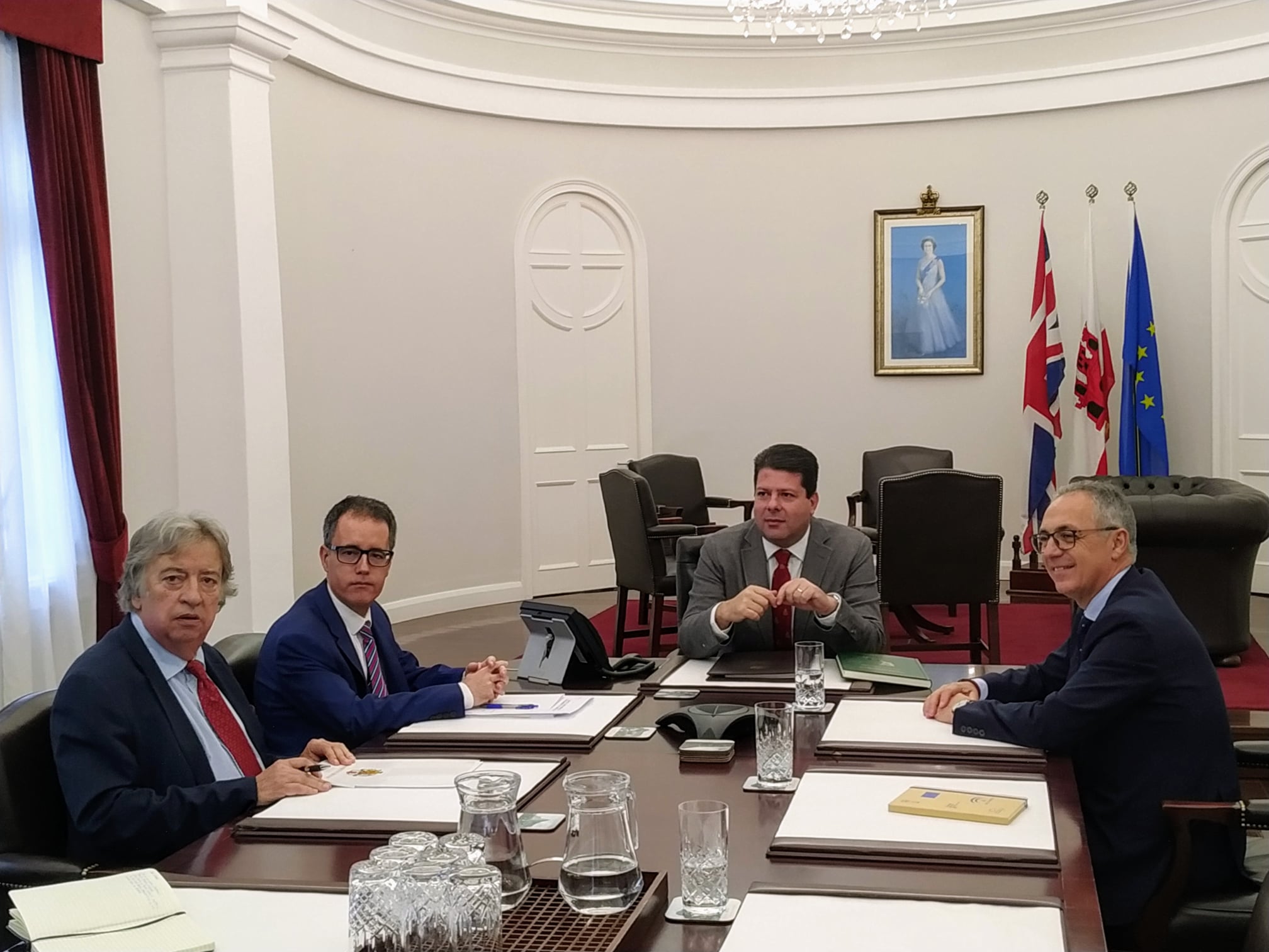 Juan Lozano continúa con su política de diálogo, persiguiendo su objetivo de mantener y fomentar las buenas relaciones de vecindad con Gibraltar en un encuentro en el que ambas partes han estrechado lazos con el intercambio de libros y revistas culturales de la comarca y con la invitación del presidente a la sede de la Mancomunidad en Villa Smith.