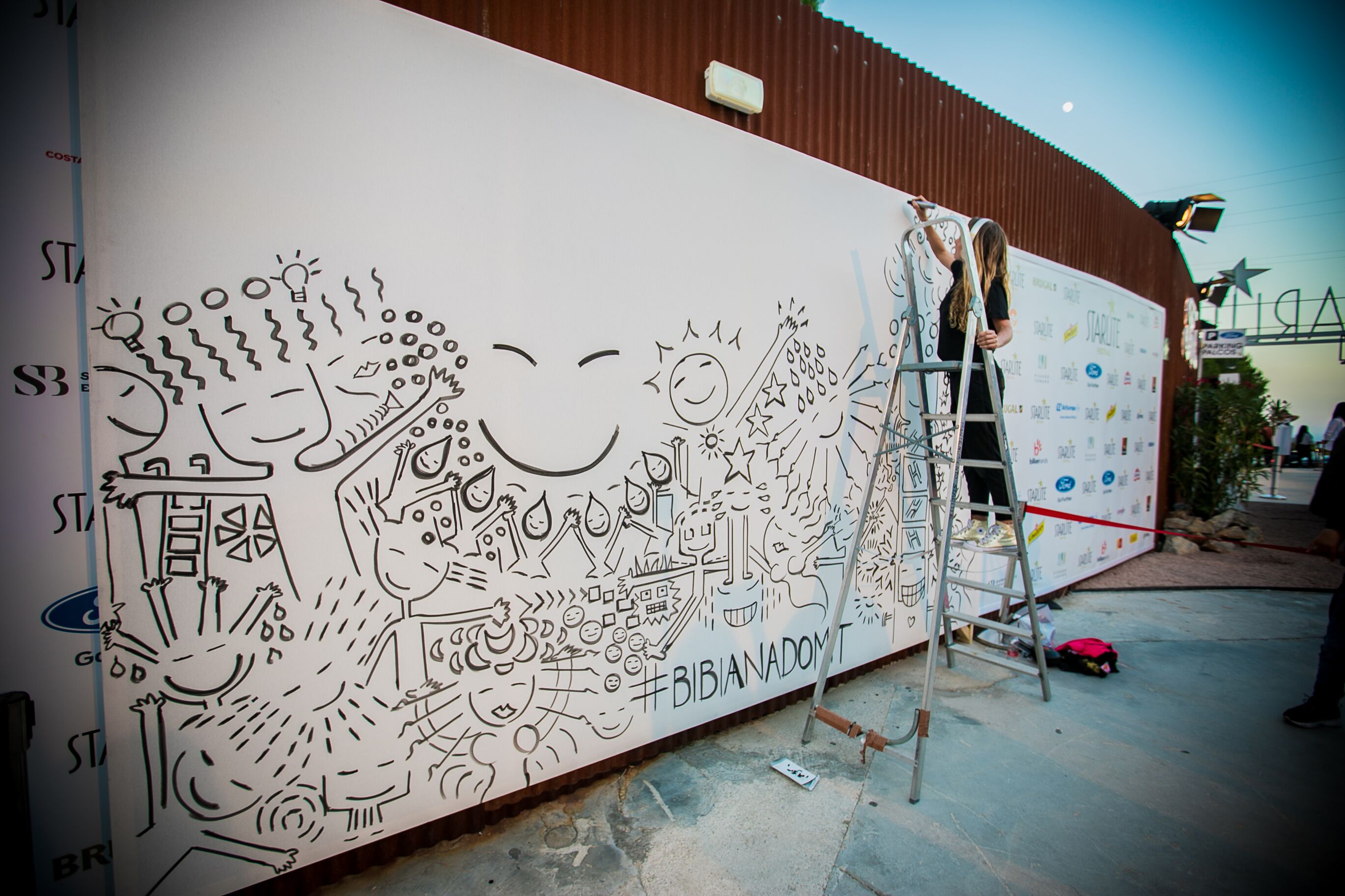 Nada menos que una performance en directo para realizar una de sus maravillosas creaciones. Bibiana es especialista en llevar a cabo murales en directo guiándose por la energía que fluye a través de ella y el hilo conductor de su obra es la alegría. «Mis creaciones sirven para demostrar a las personas que la verdad es la felicidad. La inspiración surge de la emoción que estás viviendo en el momento», tal como ella misma ha manifestado.