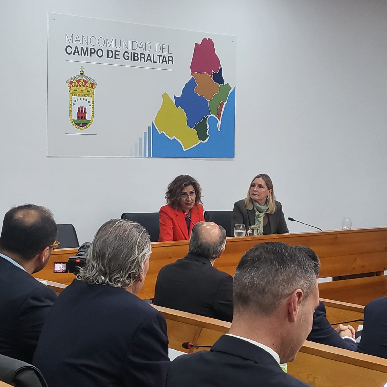 La vicepresidenta primera del Gobierno de España y ministra de Hacienda, María Jesús Montero Cuadrado, ha visitado hoy la sede de la Mancomunidad de Municipios del Campo de Gibraltar, donde ha procedido a la firma de una declaración institucional de compromiso y colaboración con los ocho municipios de la comarca.