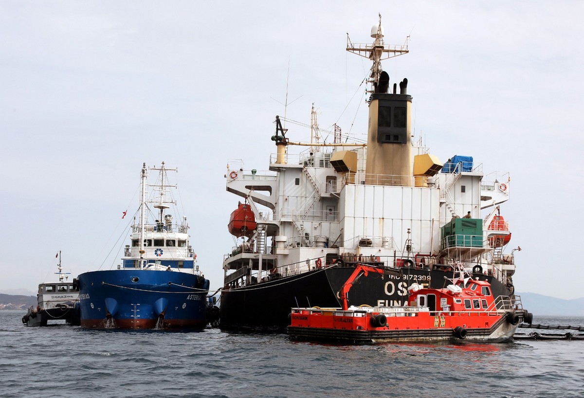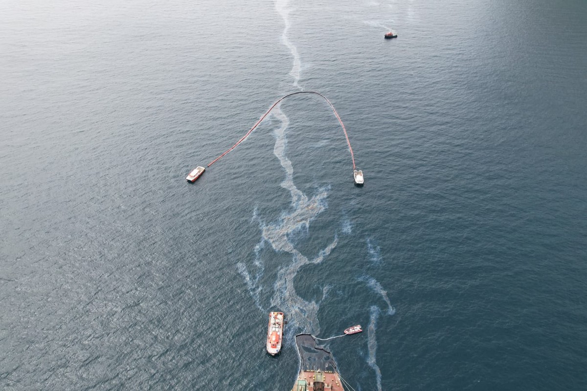 Las operaciones de retirada del combustible que se halla dentro de la barrera desplegada en el lugar del incidente han permitido eliminar aproximadamente 12 toneladas de una mezcla de combustible y agua.