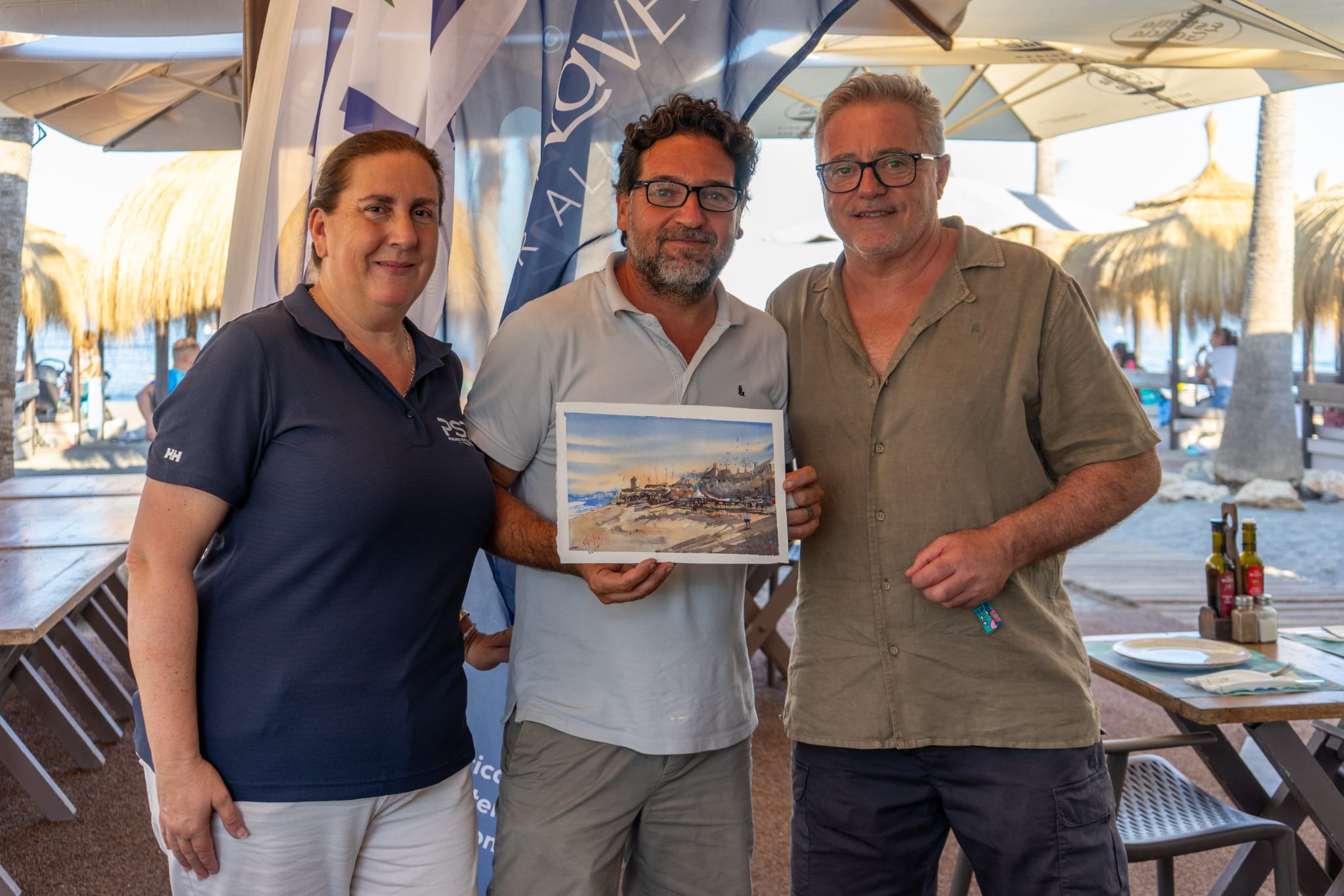 La primera parada se celebró en Chambao Chiringuito, en Torreguadiaro, donde el artista murciano Paco Hernández ofreció un espectáculo de acuarela en directo frente al mar, acompañado por un público cercano y participativo. El evento se desarrolló en un ambiente acogedor y colaborativo, con el apoyo entusiasta del equipo de Chambao, que facilitó la realización de esta primera jornada.
