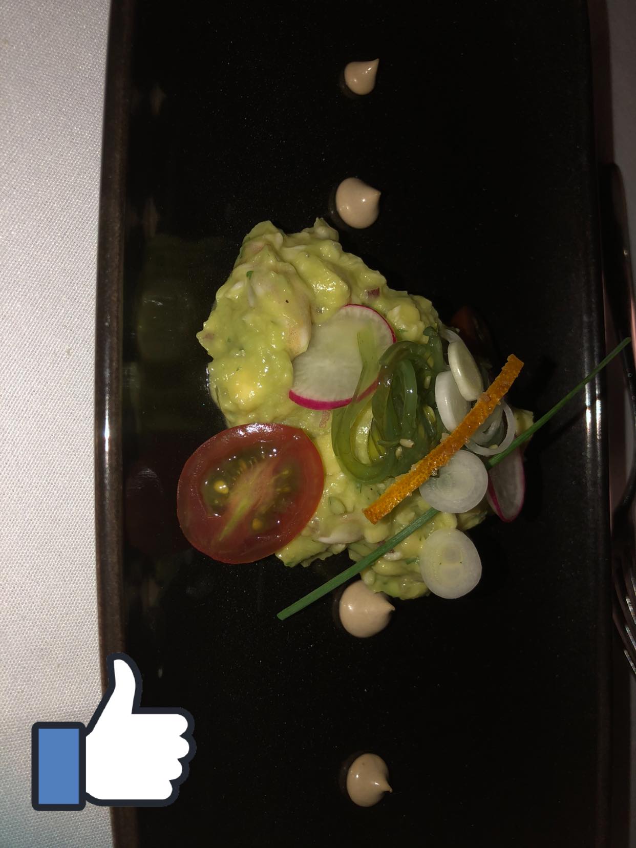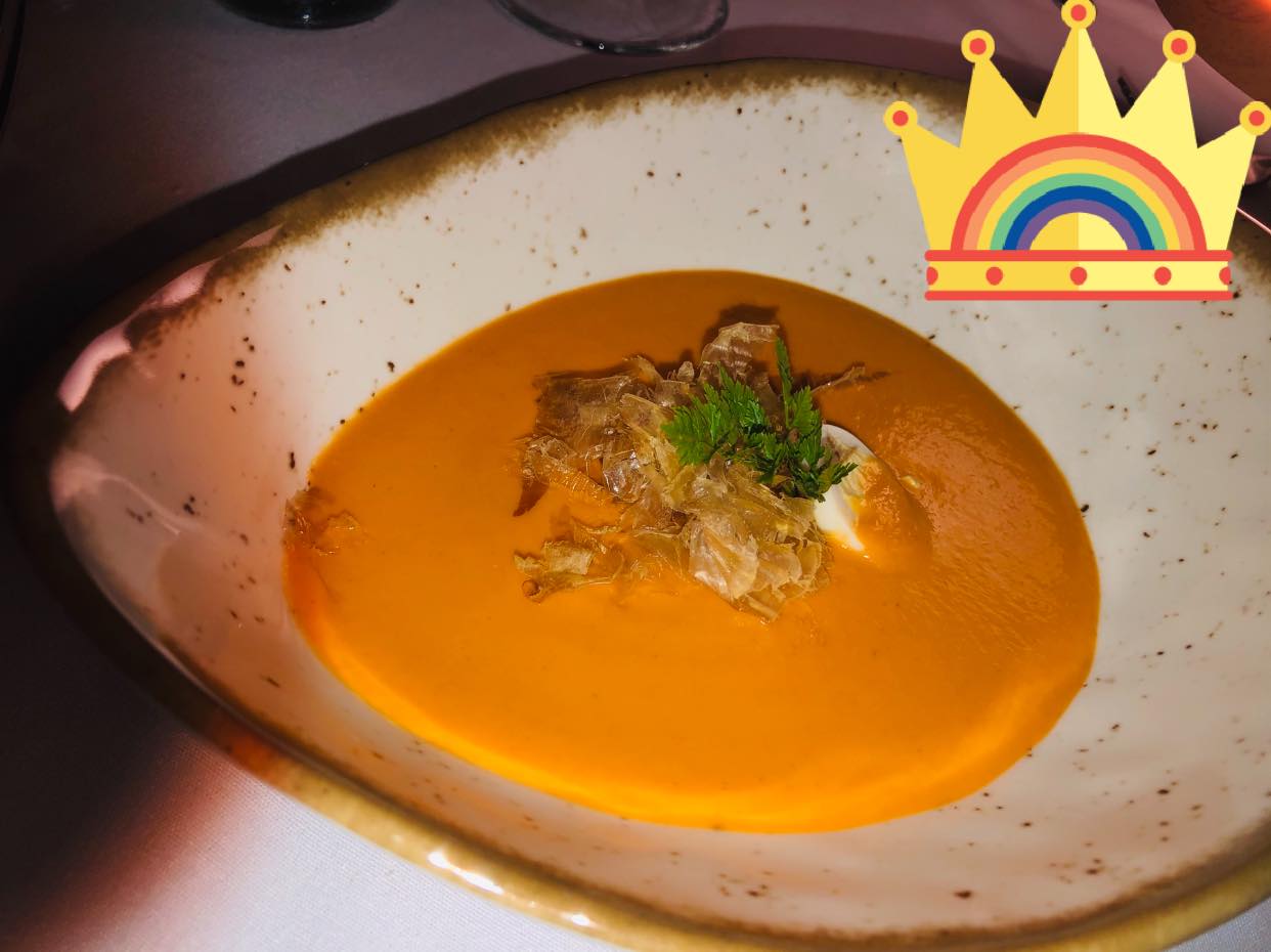 Un aperitivo a base del Cosmopolitan dio avance a un menú compuesto por: Tartar de langostinos al aroma de Lima Kafir y mandarina, Emulsión de porra antequerana de tomates asados y pétalos de Katsuobushi; Tournedo de solomillo de ternera sobre Ecrasé de boniato y avellanas al perfume de trufa blanc y, de postre, Tentación de frutos rojos. Todo regado de vino nacional y agua. El mismo chef se dirigió, al final, a los comensales mesa a mesa intercambiando opiniones sobre cómo les había parecida esta Experiencia. Por lo que oimos, una valoración muy alta para Galdón y su equipo de trabajo.