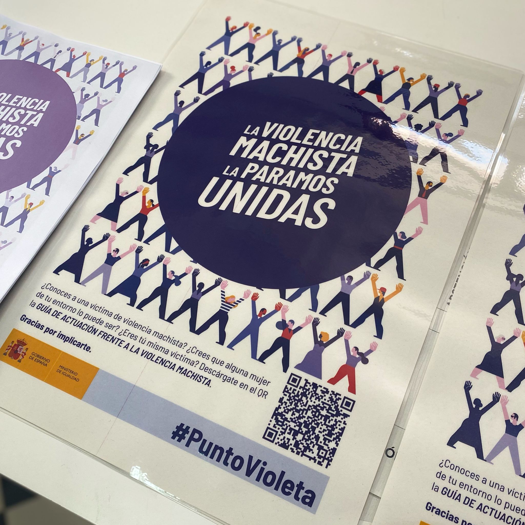 Los carteles incluyen un código QR que se puede escanear para descargar una guía muy completa sobre cómo actuar en caso de ser víctima de violencia de género o como poder ayudar si eres conocedor o conocedora de violencia machista en tu entorno.