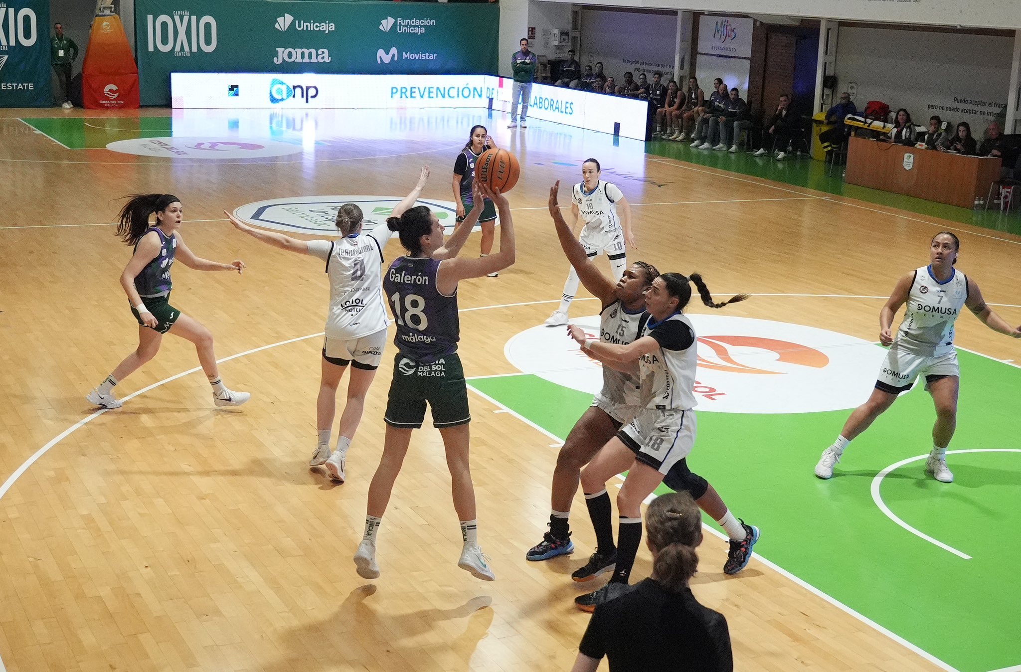 Salió en tromba el cuadro malagueño, al ritmo de Marta Ortega y como seis puntos seguidos de Cesarina Capellán para poner los primeros mimbres de la victoria Movía el banquillo Luis Aguirre intentando frenar la sangría, pero no conseguía frenar la ofensiva malagueña, que se marchaba once arriba tras los primeros diez minutos de batalla (28-17).