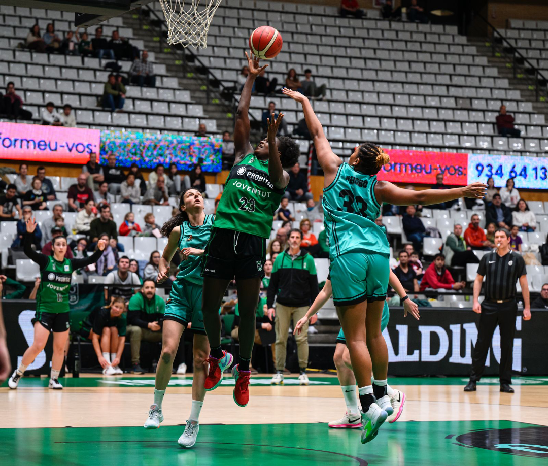 Abría el cuarto Rebeca Cotano con un triple, pero varios errores seguidos de las locales que no perdonaron Aleksandra Parzenska tras bailar en la pintura y Patri Benet en contrataque (20-21) provocaban el tiempo muerto de Jordi Vizcaíno con 8’26” para el descanso. Ninguno de los dos equipos lograba imponerse: a un triple en una canasta se respondía en la otra, pasaban los minutos y todo seguía casi igual, con 28-28 y 3’41” para el paso por vestuarios. Lo paró, sin que se hubiera movido el marcador, el técnico local cuando quedaban 70 segundos para el entretiempo, con la intención de ajustar algunos detalles, pero de poco sirvió, porque las suyas solo fallaron y Brown, tras un robo de Marina Gea, se encargó de dar ventaja a las suyas (28-30) antes del ecuador del partido.