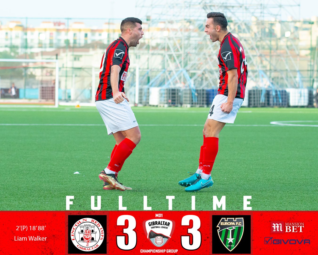 Con este resultado el Lincoln Red Imps es primero con 31 puntos y el Europa, segundo, con 28.
