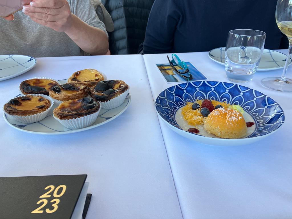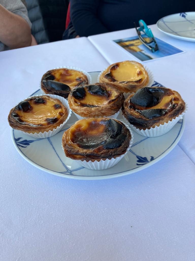 No falta de nada en el menú. Desde los vinos de Oporto hasta una tónica portuguesa. Con entrantes a base de queso, chorizo, morcilla y jamón. Pasamos a croquetas de sepia, empanadas de marisco y carne. Y llega el producto estrella, el bacalao, en sus más distintas y variadas acepciones. Y de los postres que vamos a hablar. Los pasteles de Belem, el pastei de nata, etc. El pastel de Belem es el postre estrella del país vecino. El original se realiza en una sola tienda que se localiza en Lisboa, concretamente en el barrio de Belem que da nombre a los pasteles. La pastelería de llama Pastéis de Belém y comenzó a vender estos pastelitos en el año 1837. Su receta ha ido pasando de generación en generación.