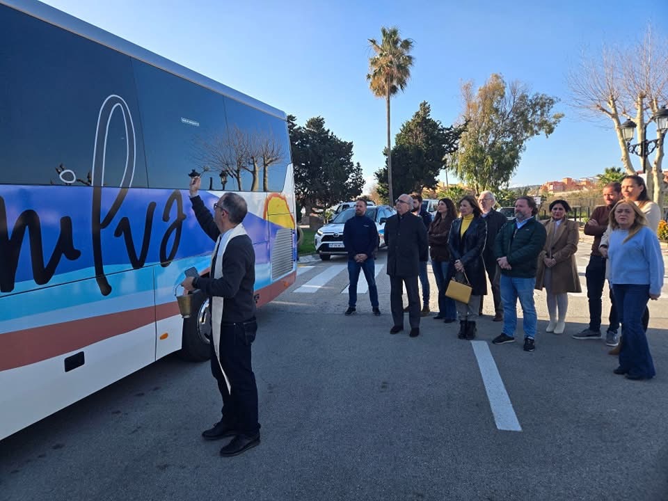 Hoy se ha presentado el nuevo autobús, que completará el servicio a la ciudadanía en general y a los alumnos de Manilva que se desplazan a Aprona en particular. Ha sido en la explanada del Yacimiento arqueológico del Castillo de la Duquesa, con la presencia de la Corporación, la bendición del párroco del municipio José Antonio Melgar y una representación del gremio del Taxi, como parte fundamental en el servicio de transporte complementario.
