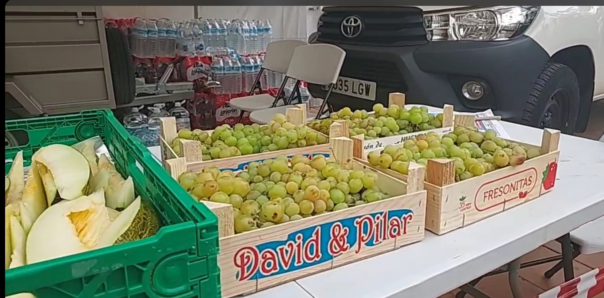Los responsables municipales han llevado 50 cajas de uva además de otras frutas y bebidas como agua o zumos. Todo ello para el equipo desplazado a la montaña y esas personas que no pueden salir de sus casas.