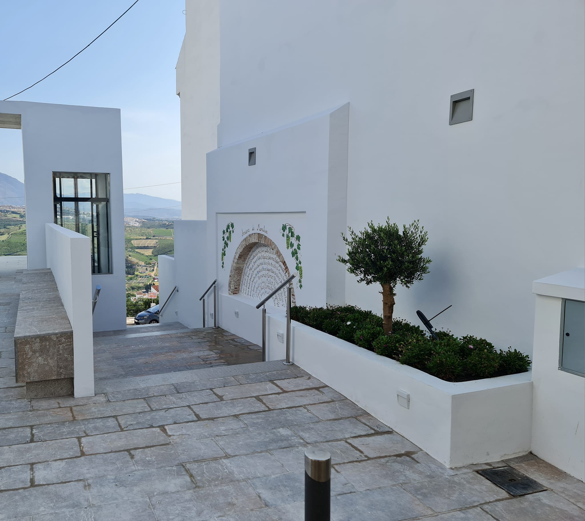 Este enlace viene a mejorar la accesibilidad a pie para los ciudadanos, ya que cuenta con una escalera y un ascensor panorámico para las personas con minusvalía, además de un mirador de extraordinarias vistas a Sierra Bermeja, nuestros viñedos y el litoral, a lo que hay que sumar esculturas ornamentales representativas de la figura del arriero, un extraordinario texto de Fernando Morales Muñoz, además de los nombres de los protagonistas plasmados en la pared por Marcos Ruiz.
