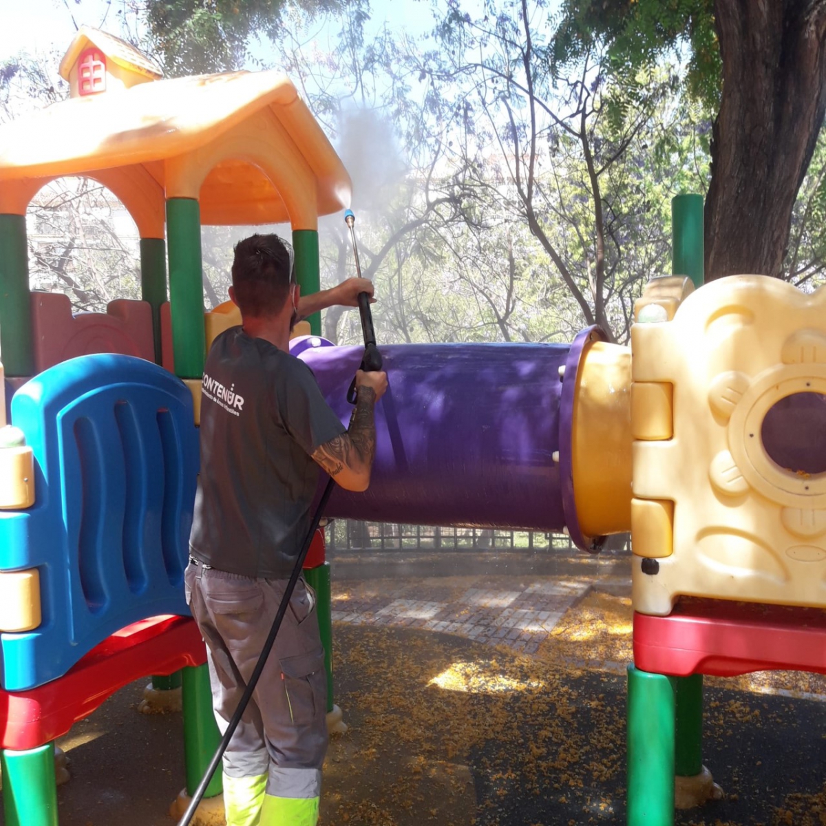 En concreto, según ha detallado, el plan integral de limpieza y desinfección de las 102 áreas de juegos se realizará con una periodicidad diaria, “lo que supondrá un gran esfuerzo logístico y económico”. Para ello, se dispondrá de un equipo material integrado por 12 equipos hidrolimpiadores, dotados de productos bactericida-fungicida para actuar en todos los elementos, tanto los estructurales como las áreas de contacto. Por su parte, el equipo humano lo conformarán 12 operarios de la empresa de conservación y mantenimiento de áreas de juegos infantiles y trabajadores de la delegación de Limpieza.