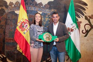 –También José Bernal, ha recibido hoy en el Ayuntamiento a Iman Ghbalou, luchadora marbellí que ganó a principios de mes el Campeonato de Europa WBC de Muay Thai, celebrado en San Pedro Alcántara, y con cuyo éxito se retiró de esta modalidad deportiva después de una gran trayectoria profesional.