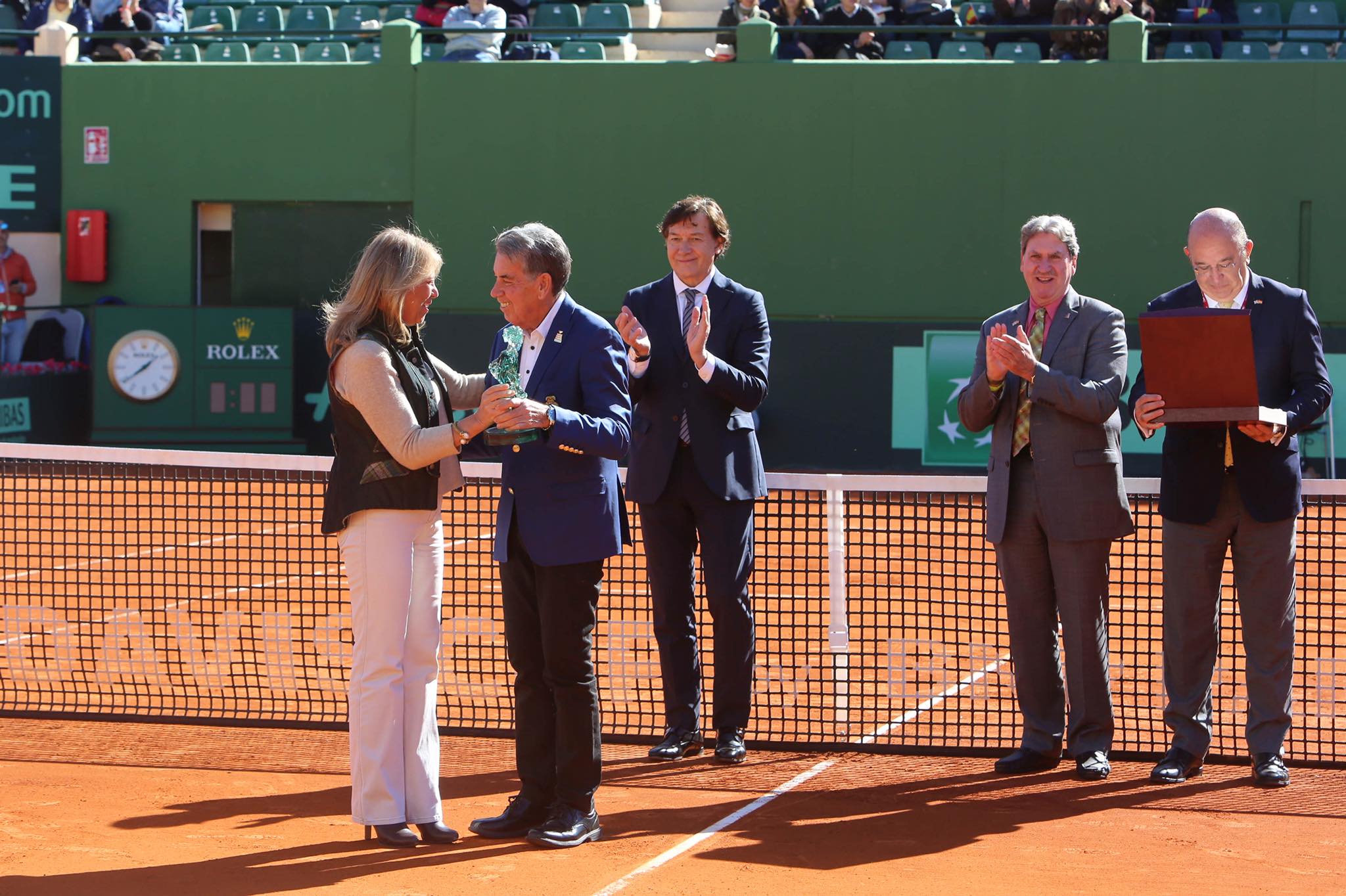 El Ayuntamiento de Marbella y la Federación Española de Tenis han rendido hoy un merecido homenaje a Manolo Santana en un acto previo a la segunda jornada de la Copa Davis, que enfrenta en la ciudad a España y Gran Bretaña en la primera ronda del grupo mundial. La alcaldesa, Ángeles Muñoz, ha destacado a Santana como “leyenda del tenis y del deporte” en la pista central del hotel Puente Romano, instalación que lleva su nombre, y ha agradecido su “compromiso con la ciudad, de la que es un extraordinario embajador”. La regidora ha estado acompañada en el acto por el presidente de la Federación Internacional de Tenis, David Haggerty; el de la española, Miguel Díaz, y el secretario de Estado para el Deporte, José Ramón Lete.