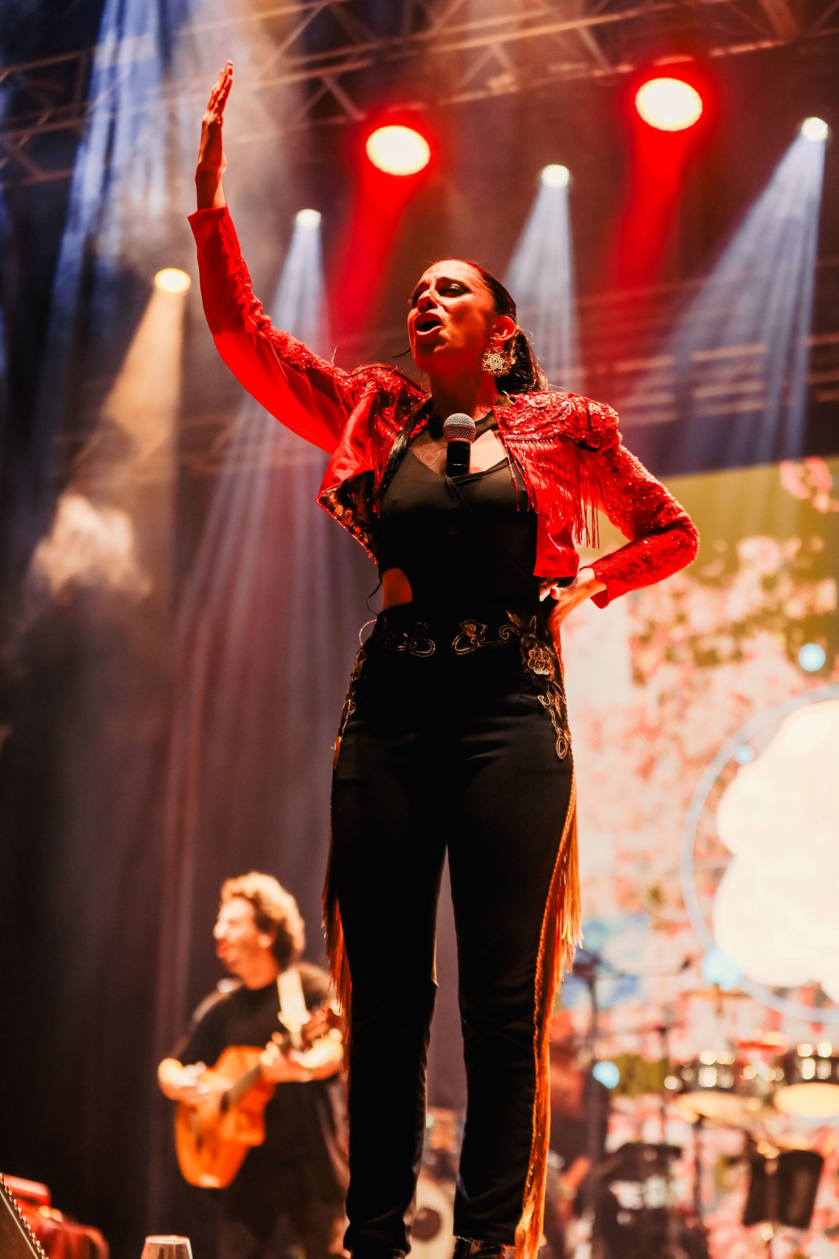 Entre grandes ovaciones, la artista malagueña María Peláe entró al escenario con el desparpajo que la caracteriza. Llegaba el momento de escuchar el flamenco que usa como altavoz para reivindicar la visibilidad a través de canciones como “Y Quién No”, “Dolorías” o “Deshielo”. A mitad de espectáculo, acompañaron a la cantante Jedet y Marta Soto para convertir el espacio en una auténtica fiesta musical.