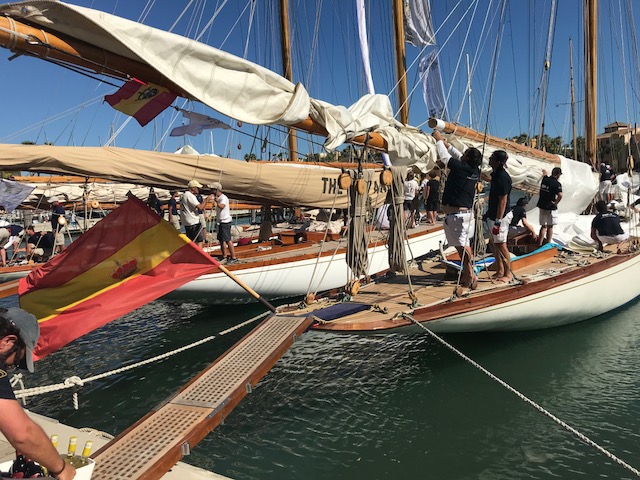 En la primera el barco capitaneado por Benjamín Redreau salió disparado por el primer puesto, pero se encontró con un batallador Hispania que llegó incluso a dominar hasta un tramo final. Hay que destacar que en esta primera prueba el Tuiga perdió una de las velas por una complicada maniobra, aunque después la recupero. Al final no ha venido Pierre Casiraghi por distintos temas personales. La primera manga termino liderado por Mariska,seguido de Hispania, Lady Anne y Tuiga.