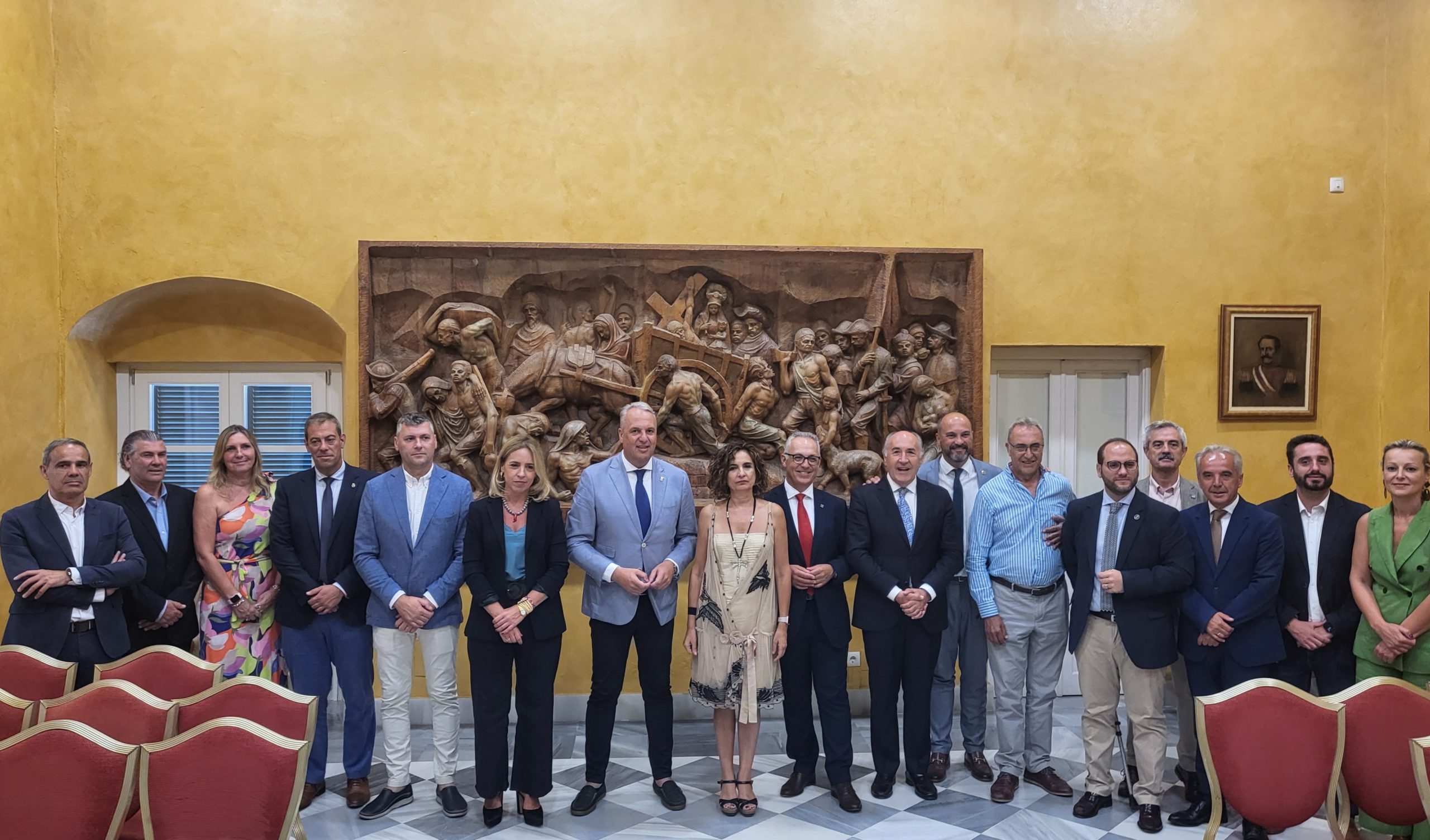 La Ministra de Hacienda y Función Pública del Gobierno de España, María Jesús Montero Cuadrado, ha acudido al Palacio de los Gobernadores de San Roque para firmar, con los alcaldes y el presidente en funciones de la Mancomunidad, los nuevos convenios de inversiones en materia de residuos y agua en la comarca.