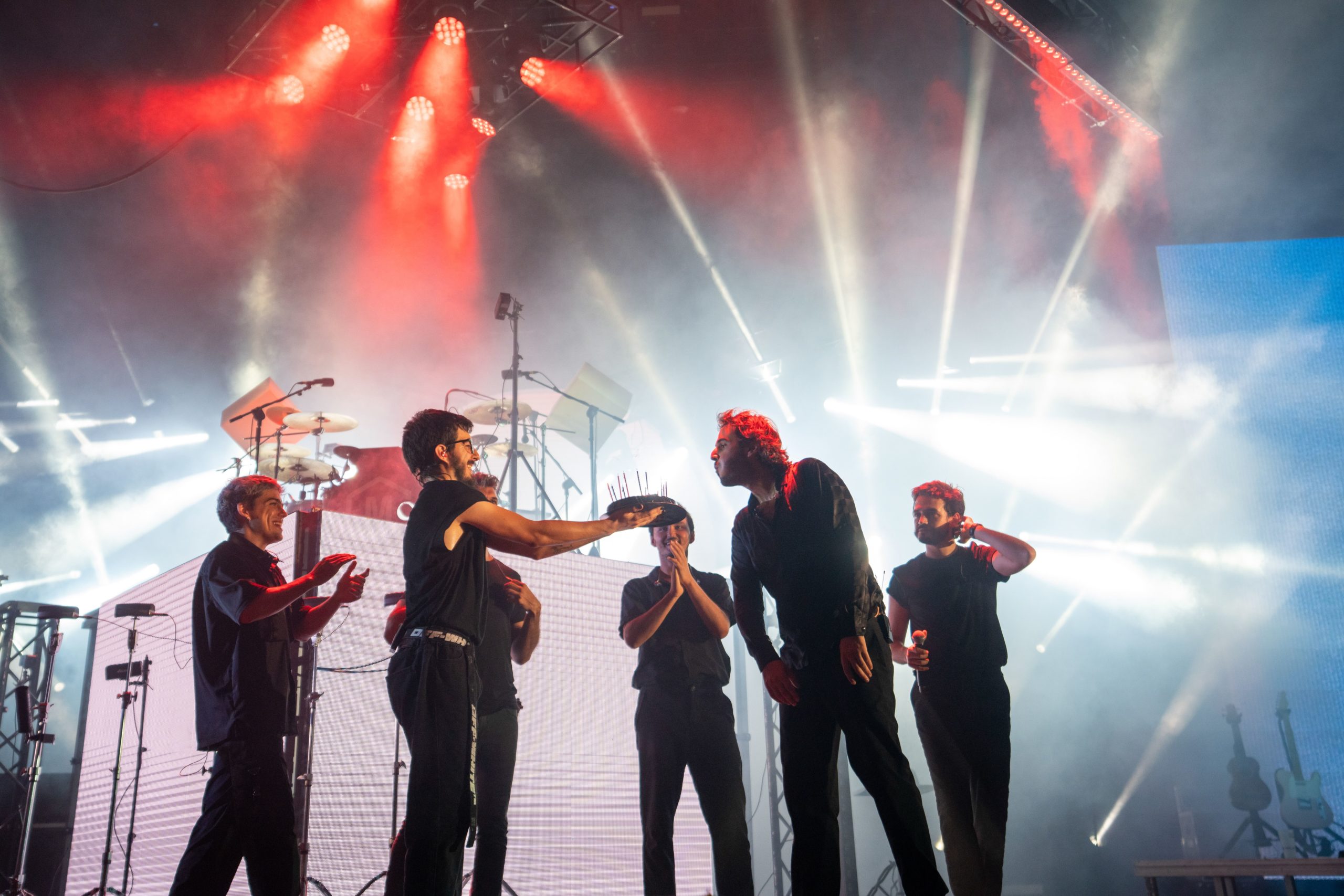 Después de un cierre redondo, los integrantes de Morat inmortalizaron el momento de mágica comunión con sus seguidores sorprendiendo a Juan Pablo Isaza, guitarra y voz de Morat, con una tarta de cumpleaños mientras el público coreaba la felicitación.